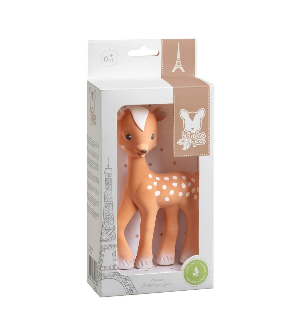 Fanfan el ciervo es el compañero ideal para tu bebé, fabricado en caucho 100% natural y pintado con pintura alimentaria. Su diseño atractivo, con manchas oscuras, estimula los sentidos del bebé. Incluye un silbato que desarrolla el oído y alivia las encías con sus partes flexibles. Ligero y fácil de agarrar, su textura suave calma al bebé, convirtiéndose en un juguete familiar y reconfortante.
