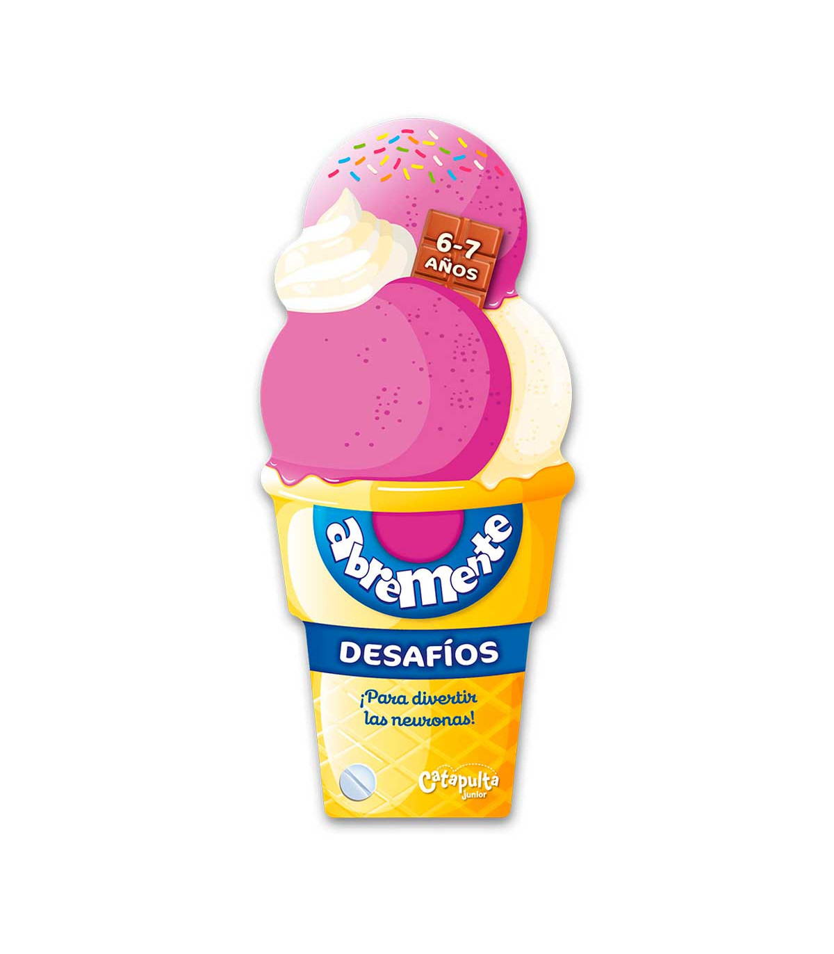 Un libro de 128 páginas en abanico con forma de helado para chicos de 6 a 7 años, que contiene juegos: laberintos, diferencias, sombras, enigmas, entre otros. Además, cuenta con datos curiosos y contenido extra para seguir jugando.