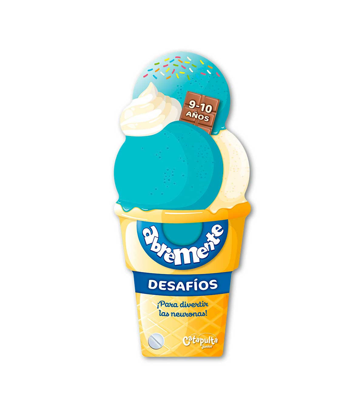 Un libro de 128 páginas en abanico con forma de helado para chicos de 9 a 10 años, que contiene juegos: laberintos, diferencias, sombras, enigmas, entre otros. Además, cuenta con datos curiosos y contenido extra para seguir jugando.