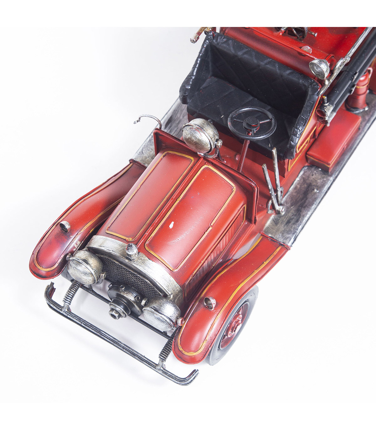 Adorno de camión de bomberos de metal color rojo de 42 cm de largo. Ideal para decorar bibliotecas o escritorios.