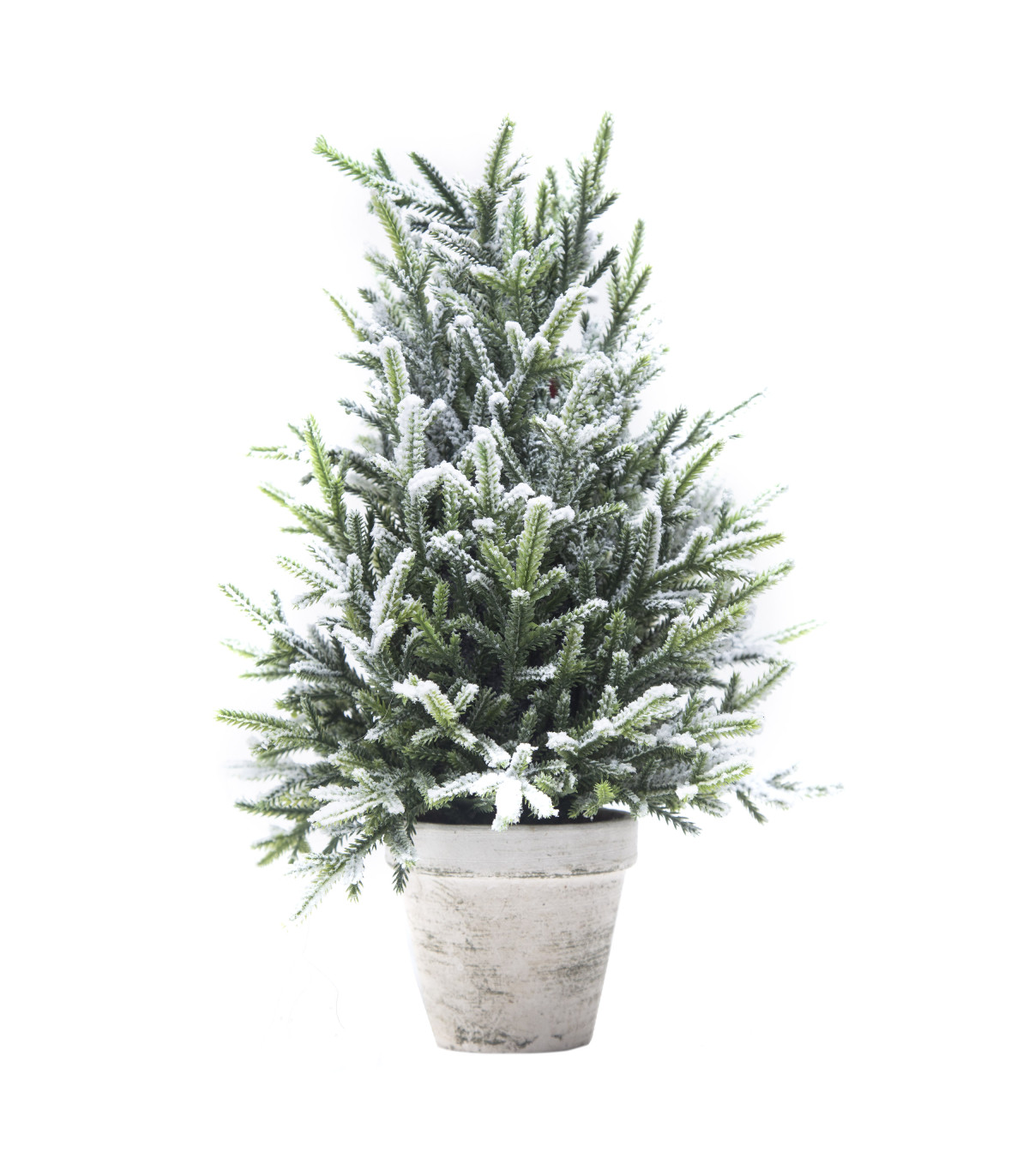 Un pino artificial de 40 cm de alto con puntas nevadas en maceta para decorar tu casa en Navidad.