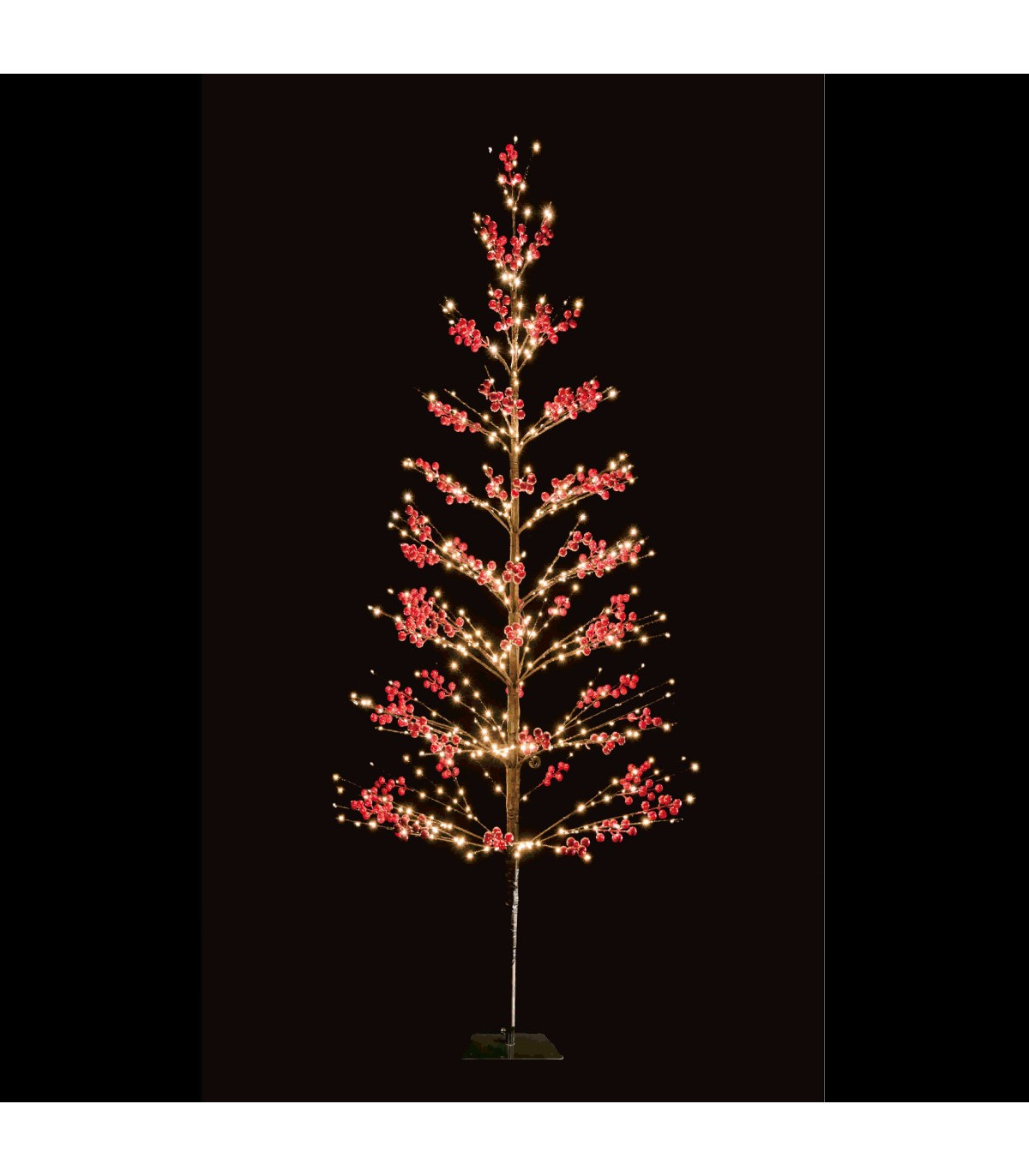 Un árbol rojo de 210 cm de alto y 975 luces LED cálidas. Ideal para decorar interiores y exteriores, con funciones de luz que crean un ambiente cálido y festivo.