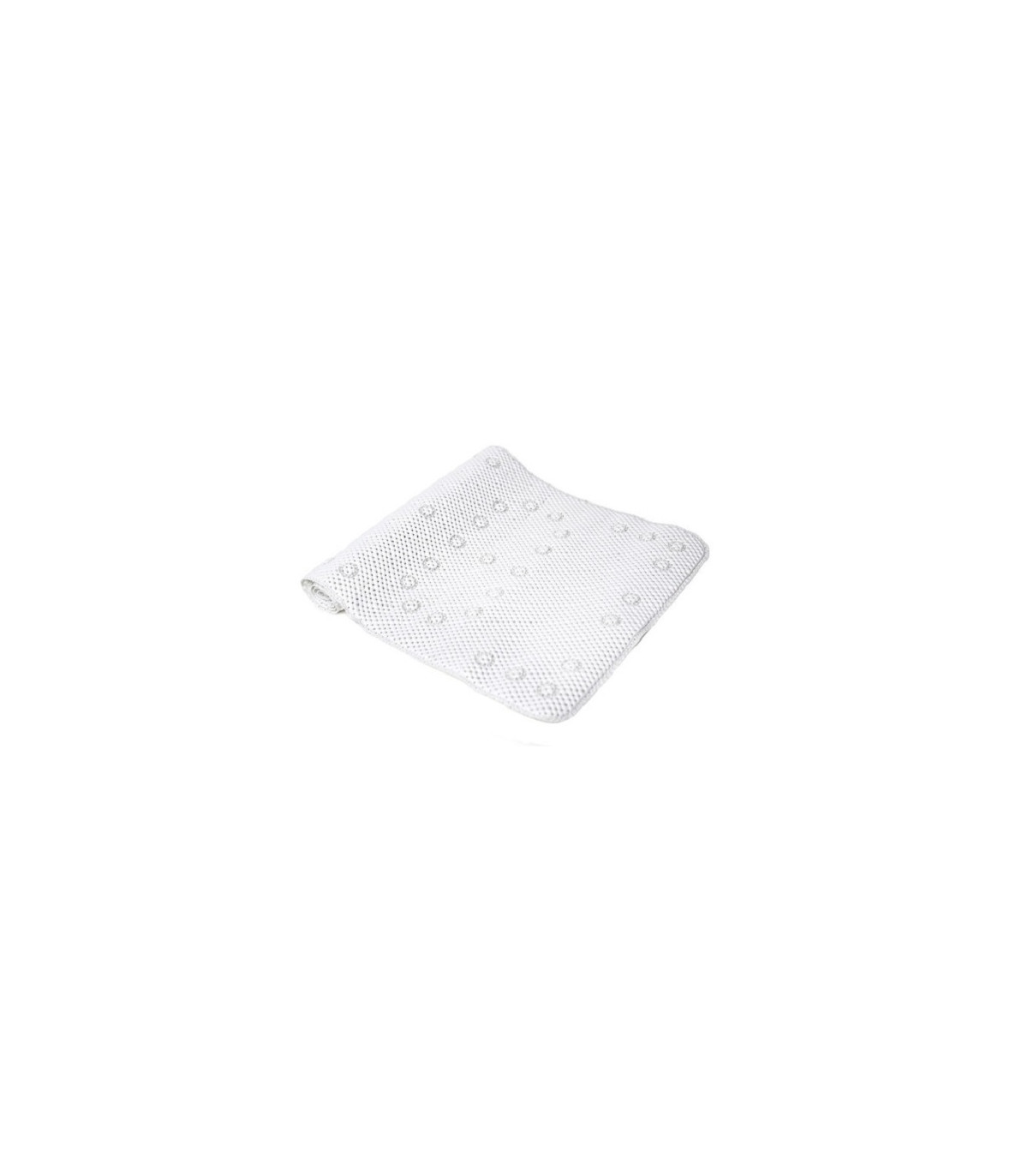 Alfombra antideslizante con 58 ventosas. Con poros que permiten el correcto flujo del agua y un material suave y resistente. Apto para lavar en lavarropas.