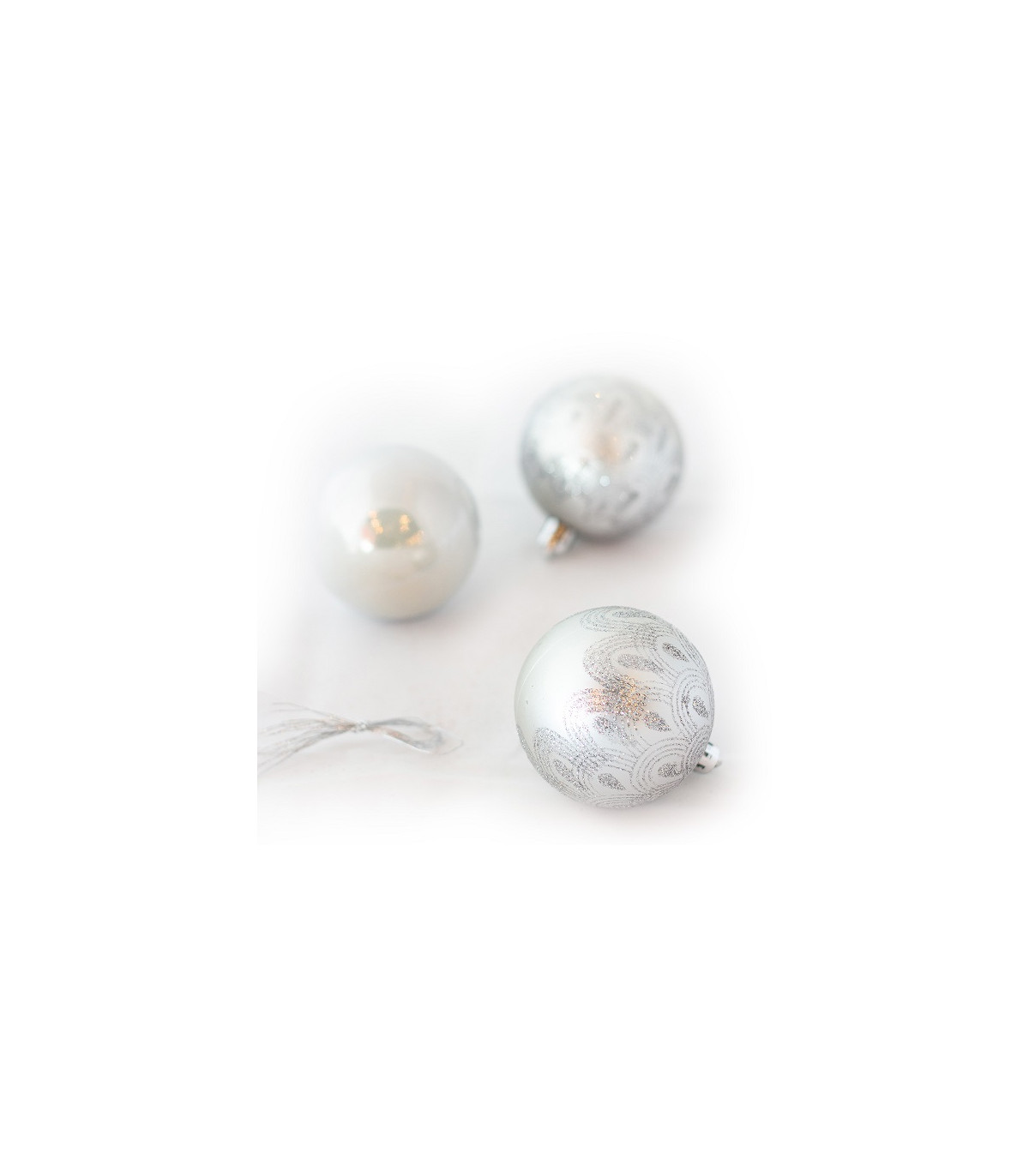 Set de 6 Bolas Perladas y Mate con Glitter de 8 cm Plateadas Alparamis