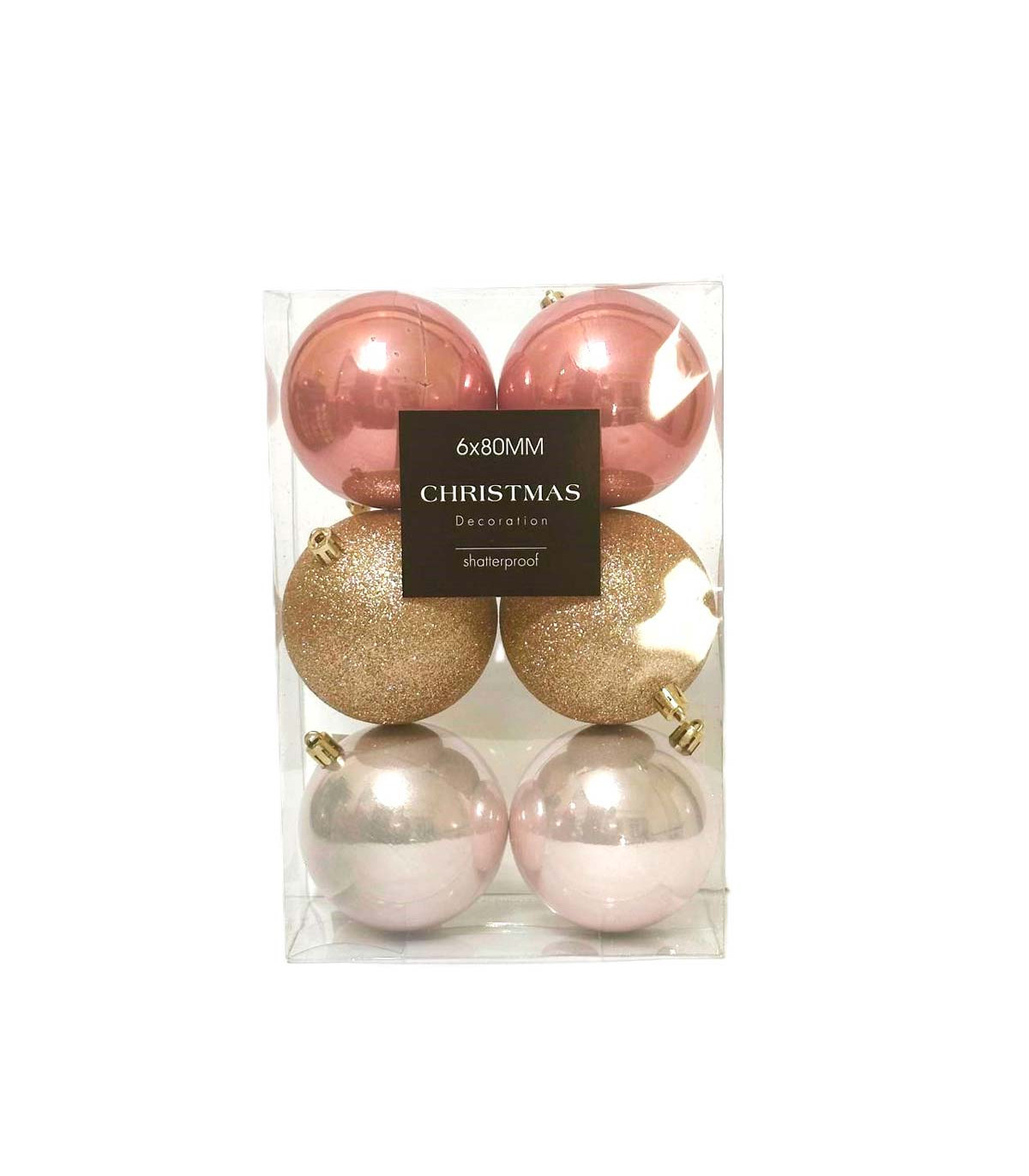 Bolas Rosas Doradas y Plateadas de 8 cm x 6 Alparamis