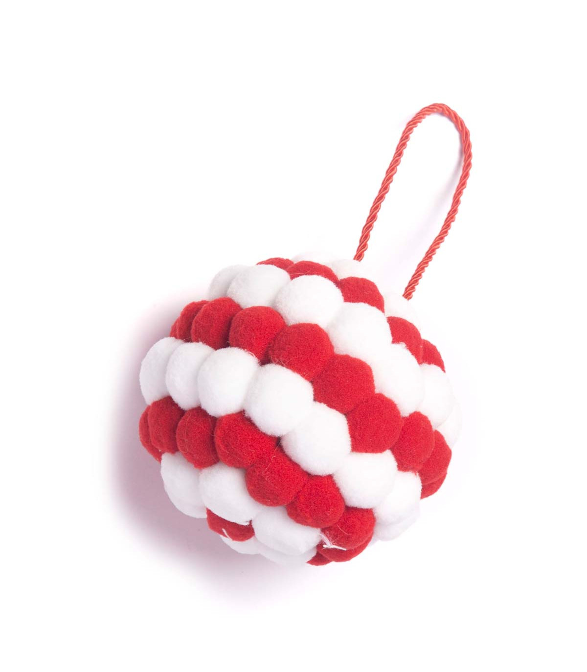 Adorno de Bola Pom Pom Roja y Blanca 8 cm Alparamis