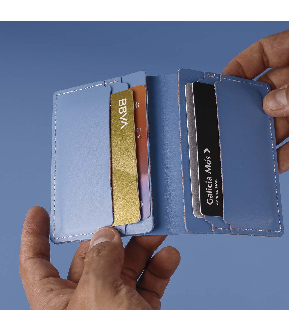 Este tarjetero doble de 10 x 7 cm, realizado con un diseño minimalista y agradable al tacto, es ideal para acompañarte a diario. Es un producto sustentable y duradero, hecho a mano con cuero reciclado.