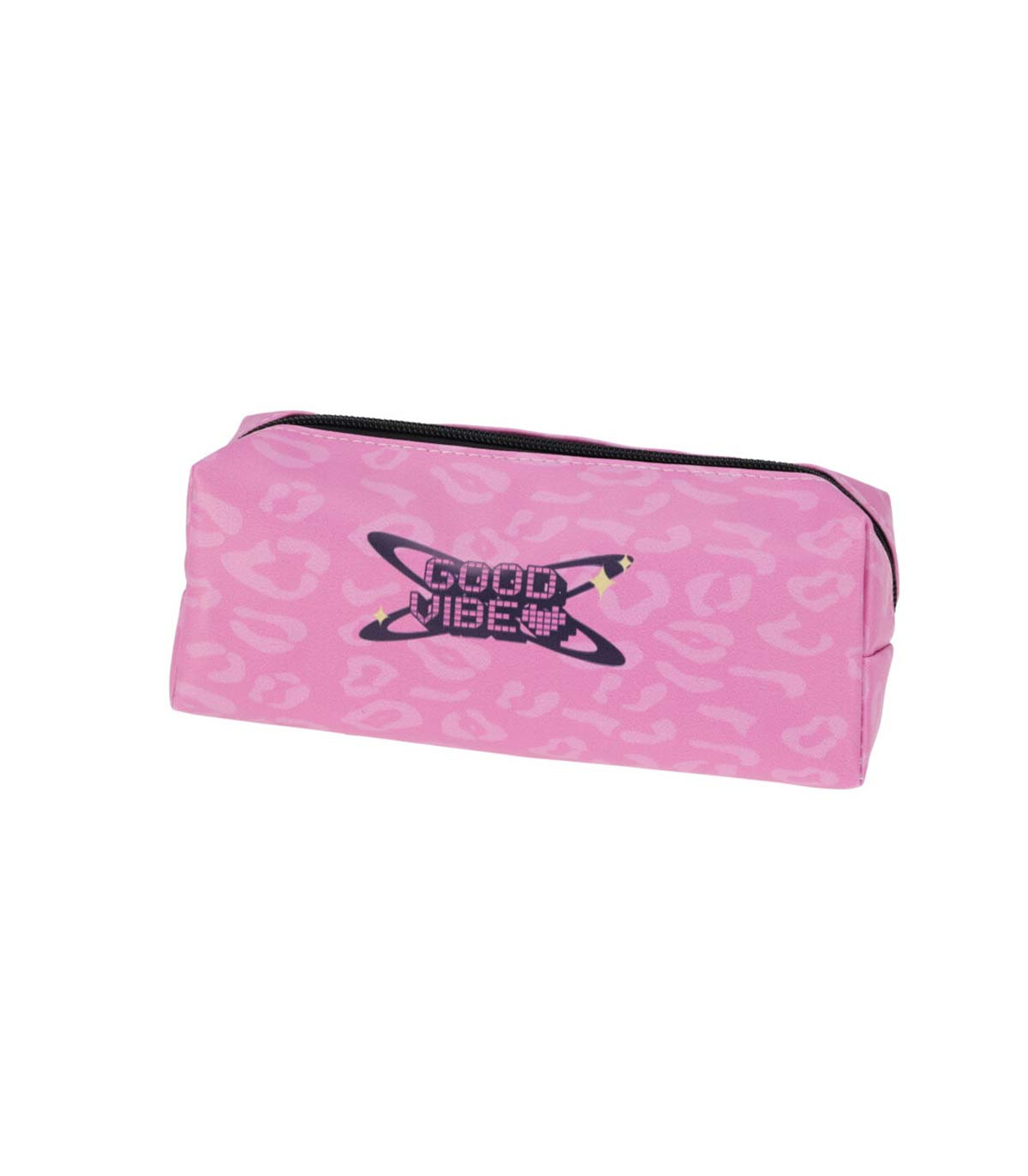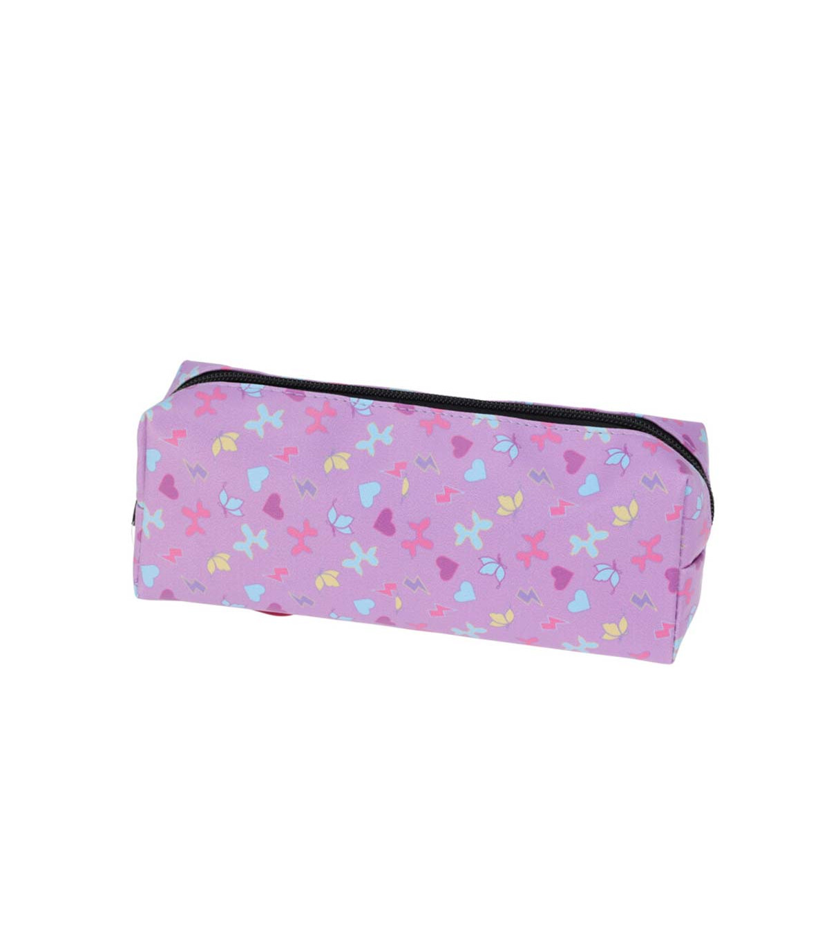 Una cartuchera de la colección Butterfly hecha en poliuretano, de 20 cm de ancho, 8.8 cm de alto y 5.5 de profundidad. Con cierre e interior forrado.
