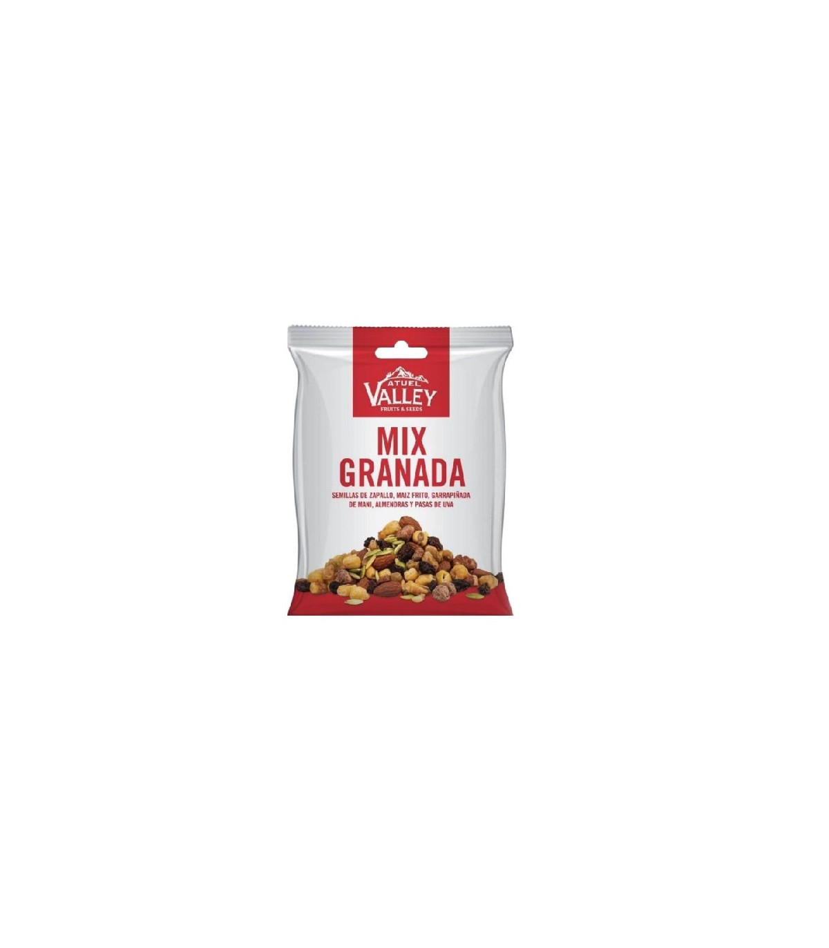 Mezcla de frutos secos con maiz salado, garrapiñada de maní y semillas de zapallo.