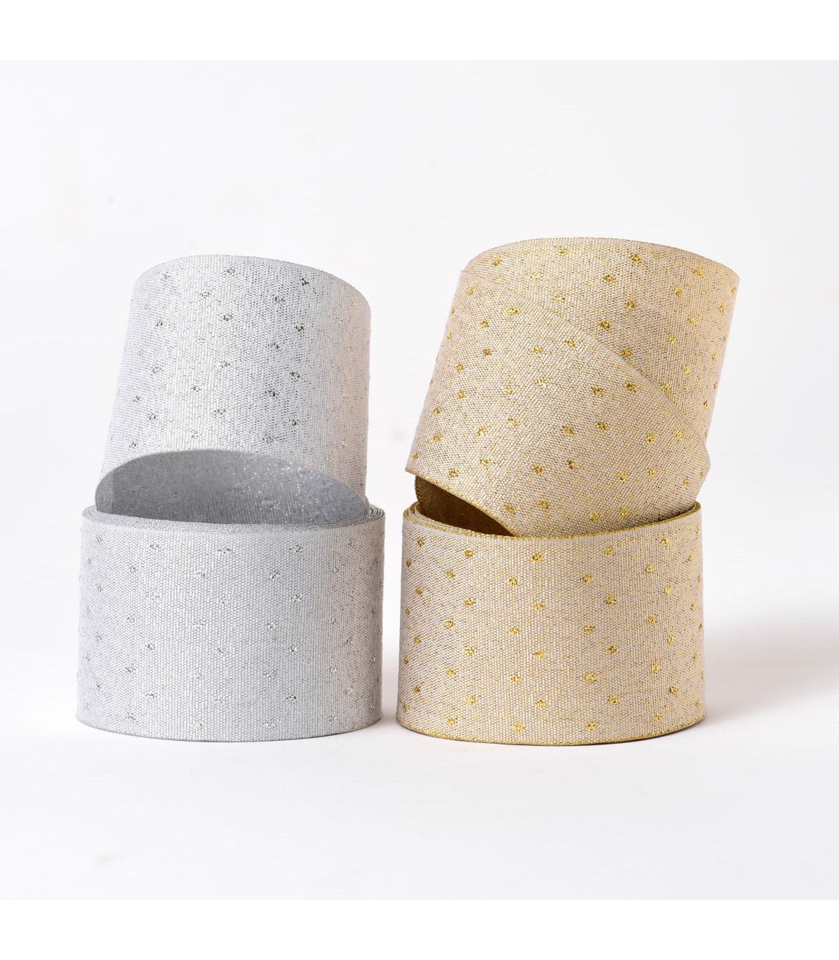 Una cinta de tela de 3.8 cm de ancho y 10 metros de largo para decorar. Ideal para decorar el árbol de Navidad.
