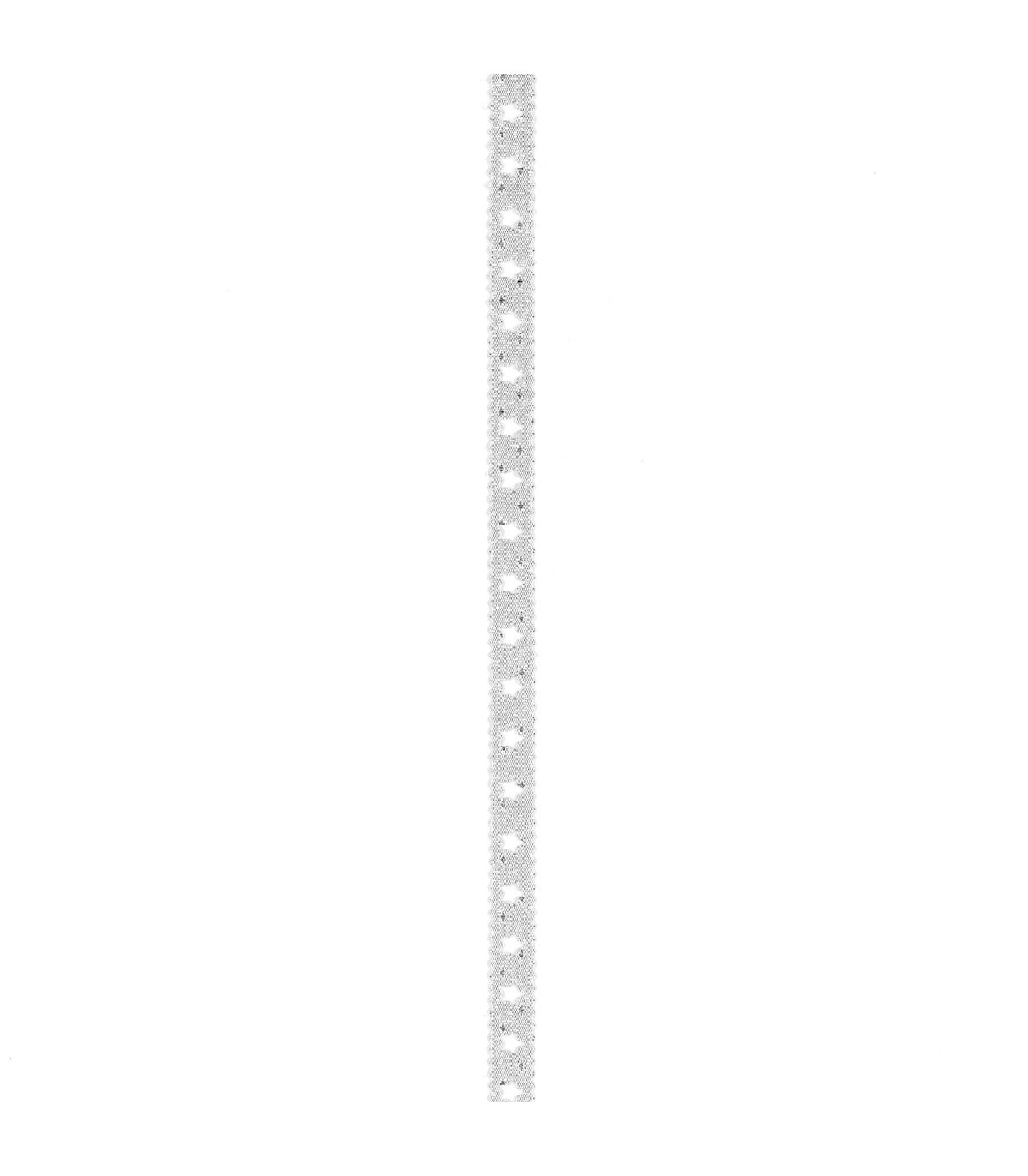 Una cinta de tela con una trama de estrellas troqueladas, de 1 cm de ancho y 10 metros de largo para decorar. Ideal para manualidades y decorar el árbol de Navidad.