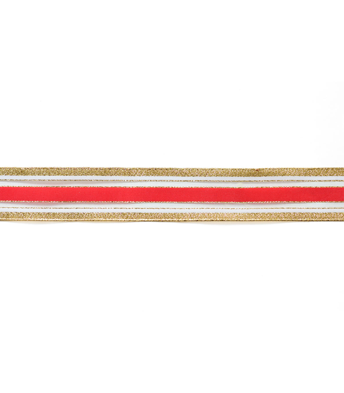Cinta Samarian con Alambre Dorada y Roja 4 cm x 10 metros