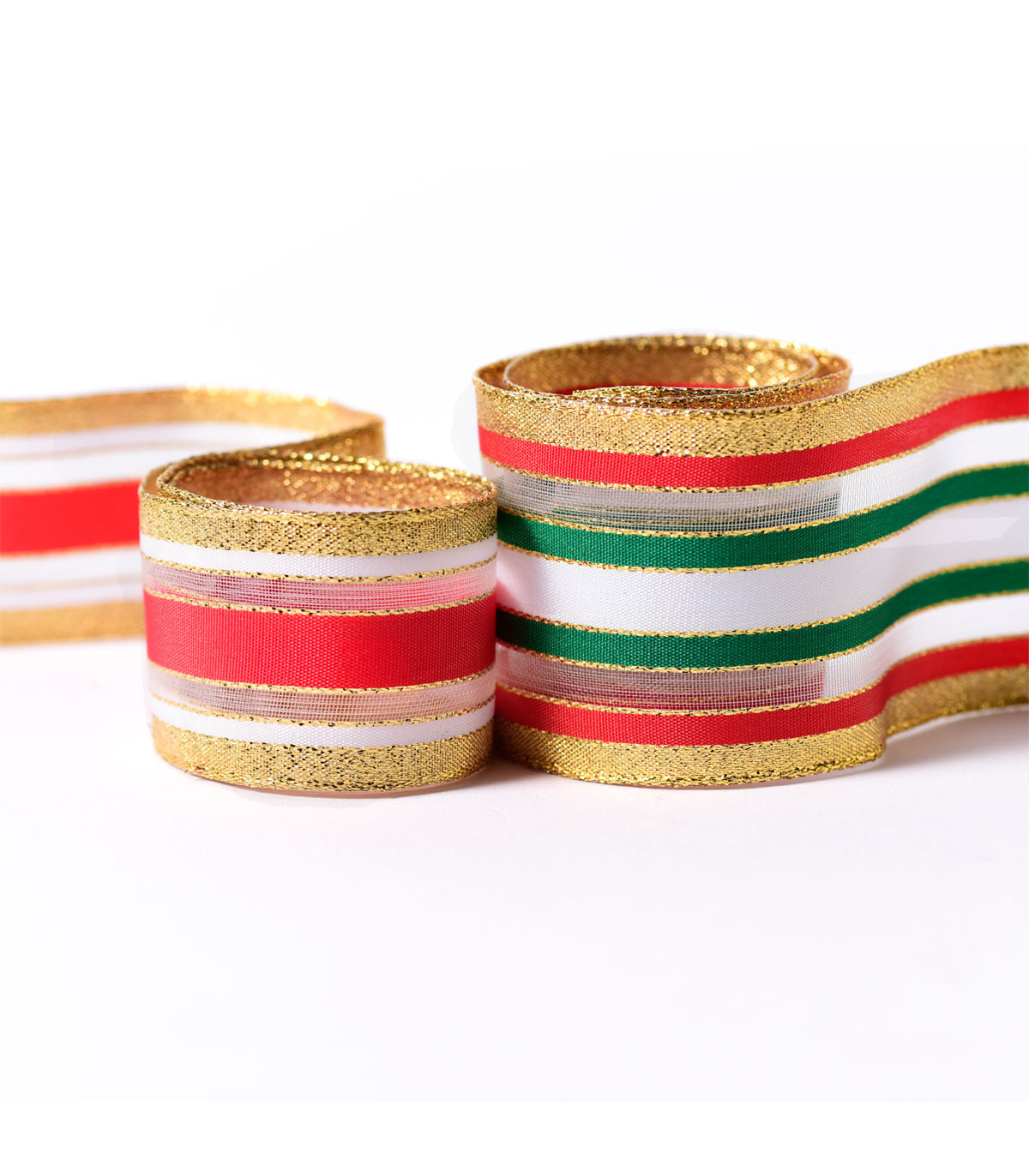 Una cinta de tela con alambre en los bordes, de 4 cm de ancho y 10 metros de largo para decorar. Ideal para decorar el árbol de Navidad.