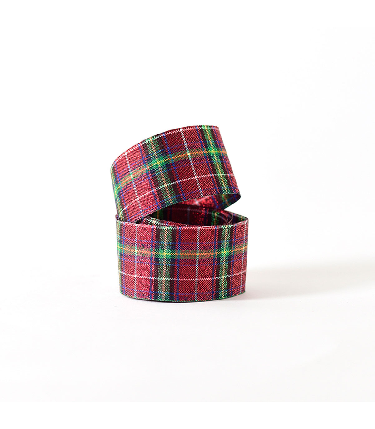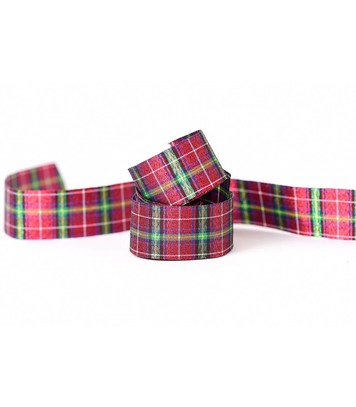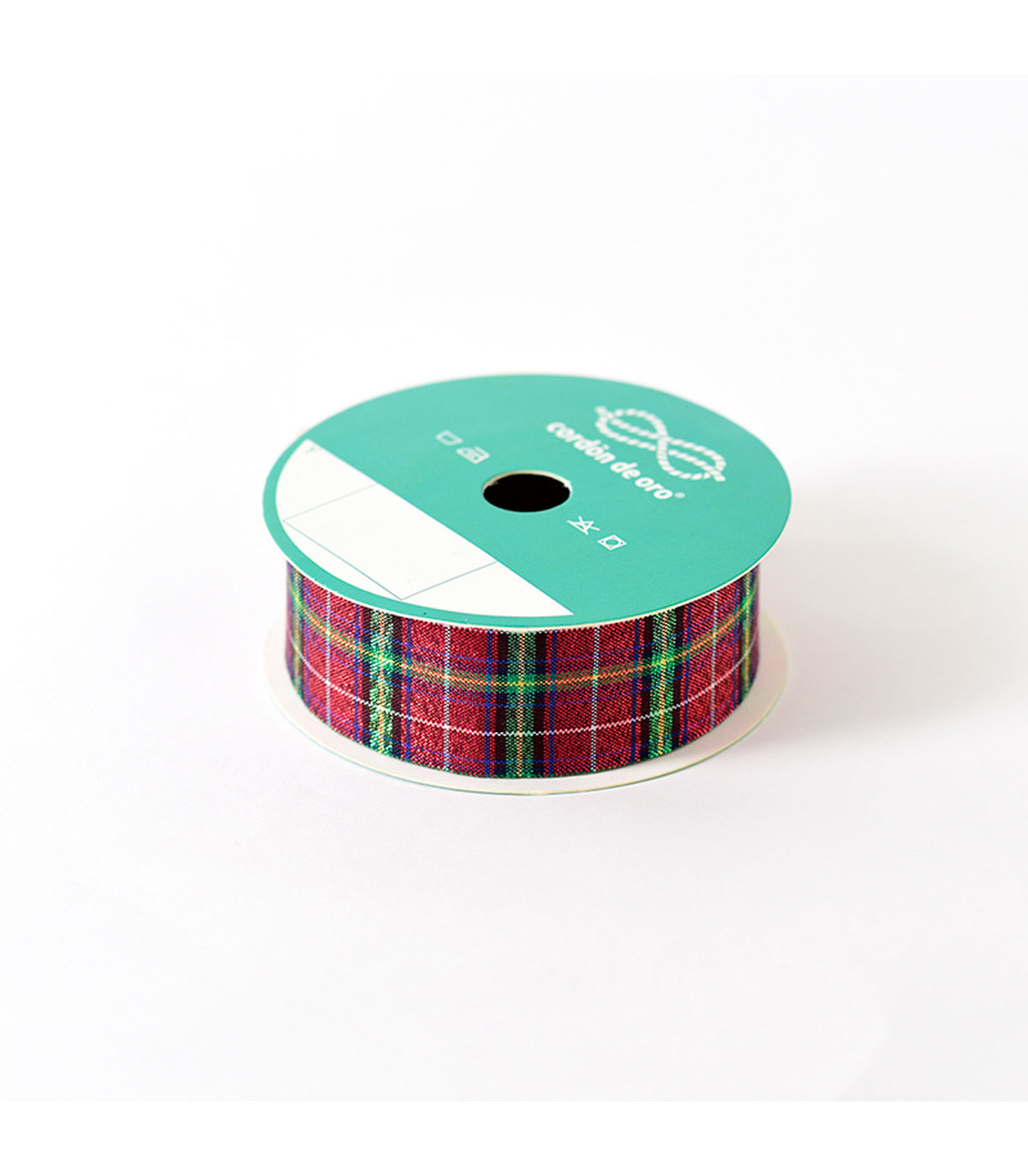 Una cinta de tela escocesa metalizada de 2.5 cm de ancho y 10 metros de largo para decorar. Ideal para decorar en Navidad.