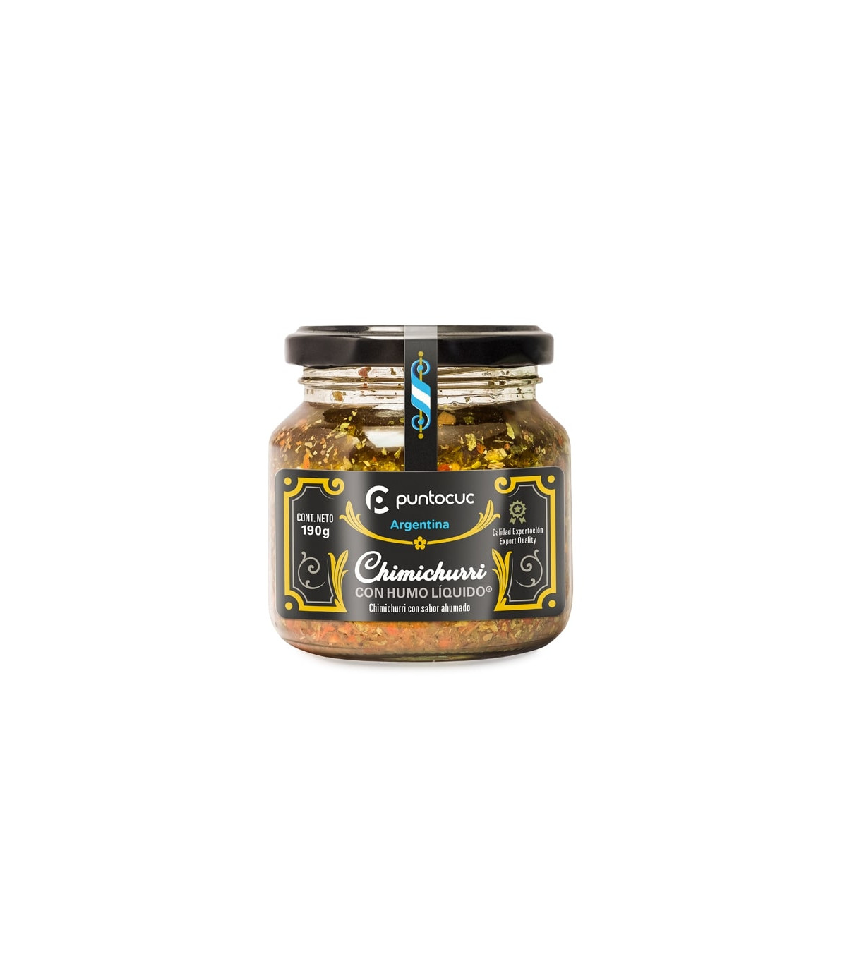 A la intensidad del sabor especiado del chimi clásico, Chimichurri con Humo Líquido Puntocuc le suma un delicioso plus de sabor ahumado, obtenido por medio de un proceso de condensación 100% natural, que le quita al ahumado sustancias poco saludables sin