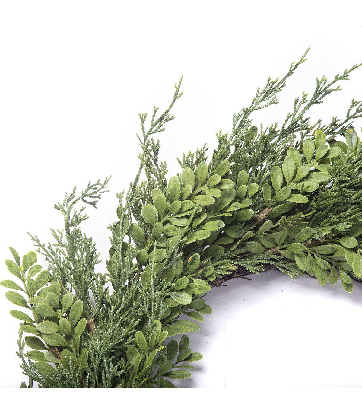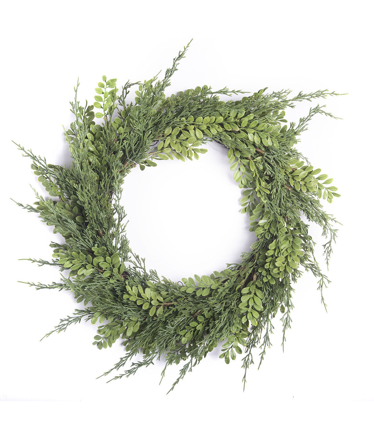 Corona de 55,9 cm de diámetro con hojas verdes. Ideal para decorar tu mesa o la puerta de tu casa en Navidad.