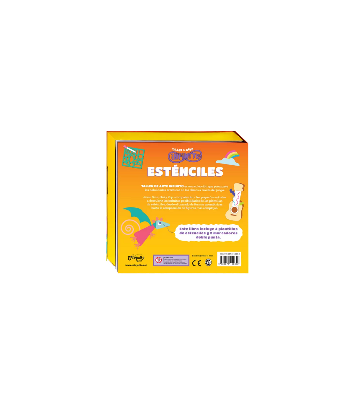 Jaicu, Sine, Oni y Pop acompañarán a los pequeños artistas a descubrir las infinitas posibilidades de las plantillas de esténciles, desde el trazado de formas geométricas hasta la composición de figuras más complejas. INCLUYE: 4 plantillas de esténciles y