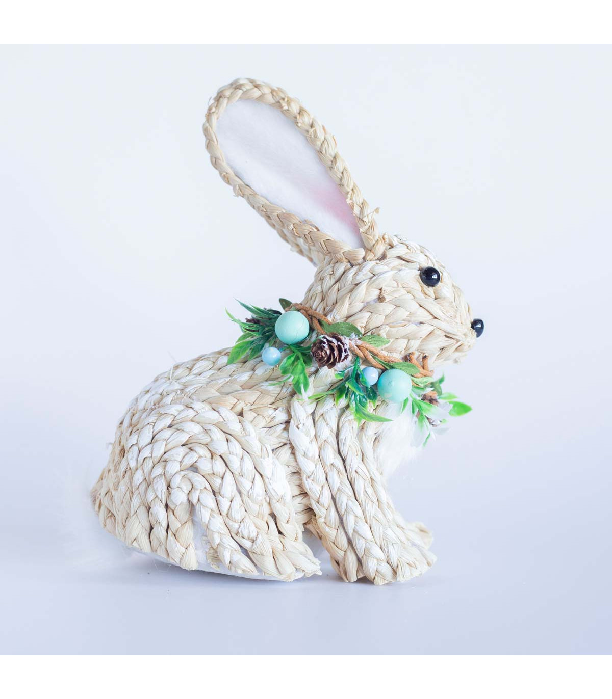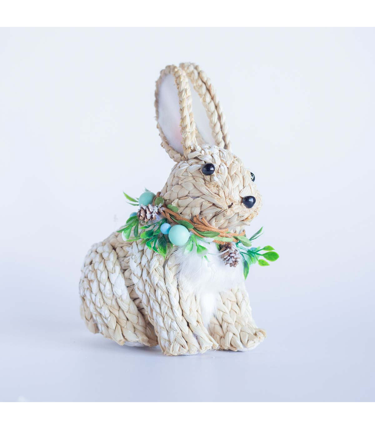 Un adorno de mimbre de 23 cm de alto con forma de conejo para decorar tu casa en Navidad o Pascua.