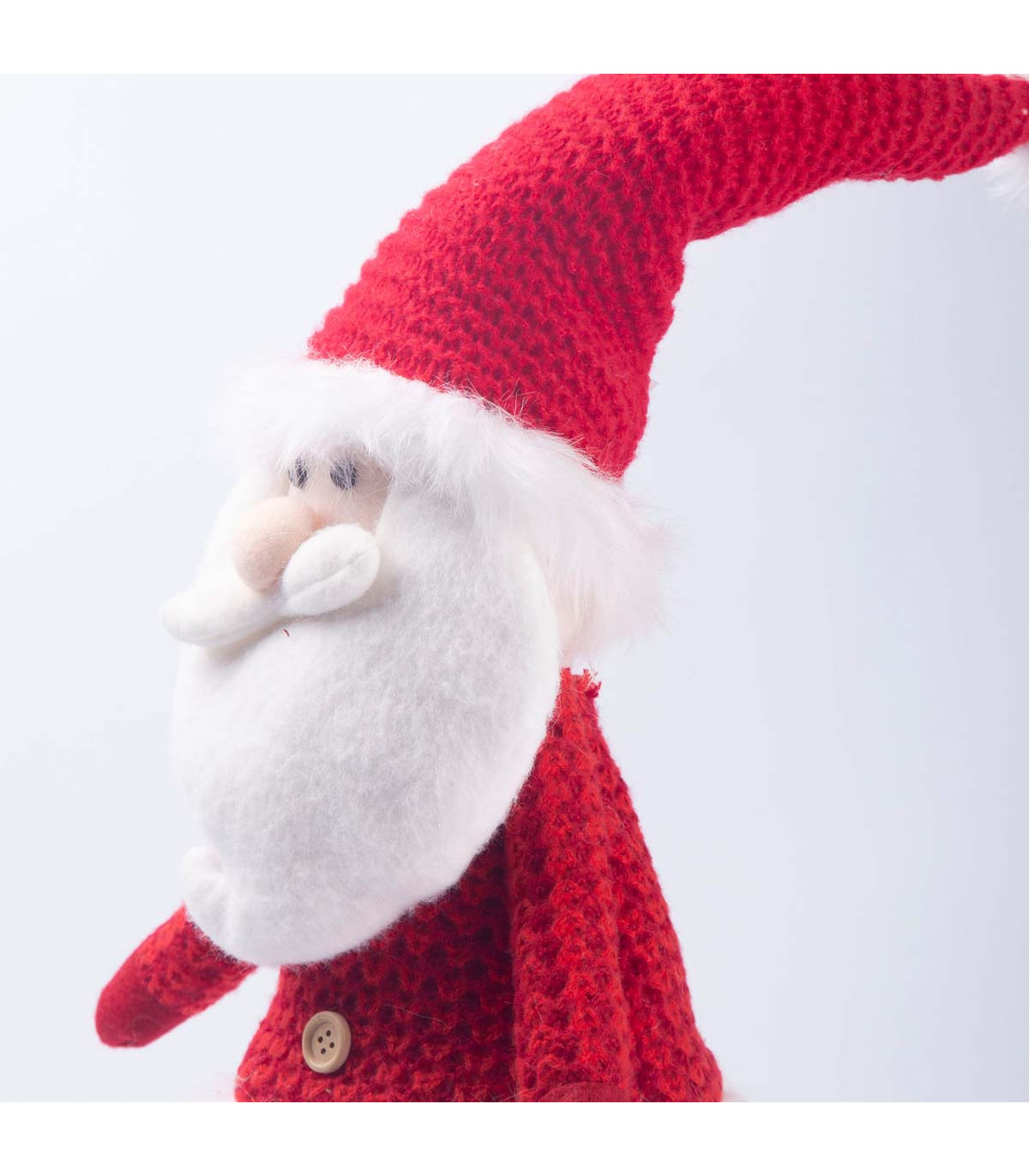Un adorno con forma de Papá Noel de 78 cm de alto con piernas extensibles. Hecho en tela y con toda la magia de Alparamis para decorar tu casa en Navidad.