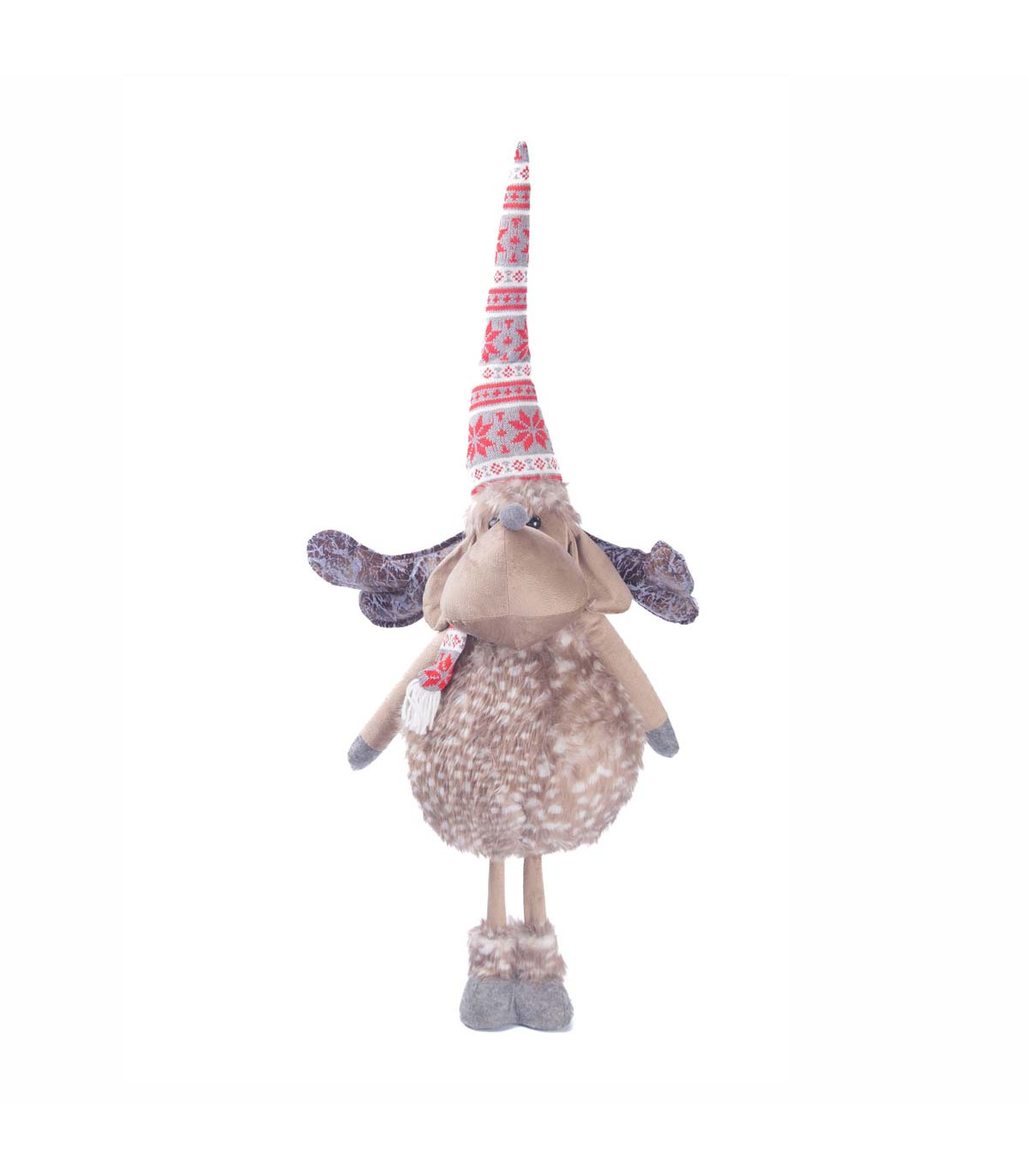Un adorno con forma de Reno de 90 cm de alto hecho en tela y con toda la magia de Alparamis para decorar tu casa en Navidad.