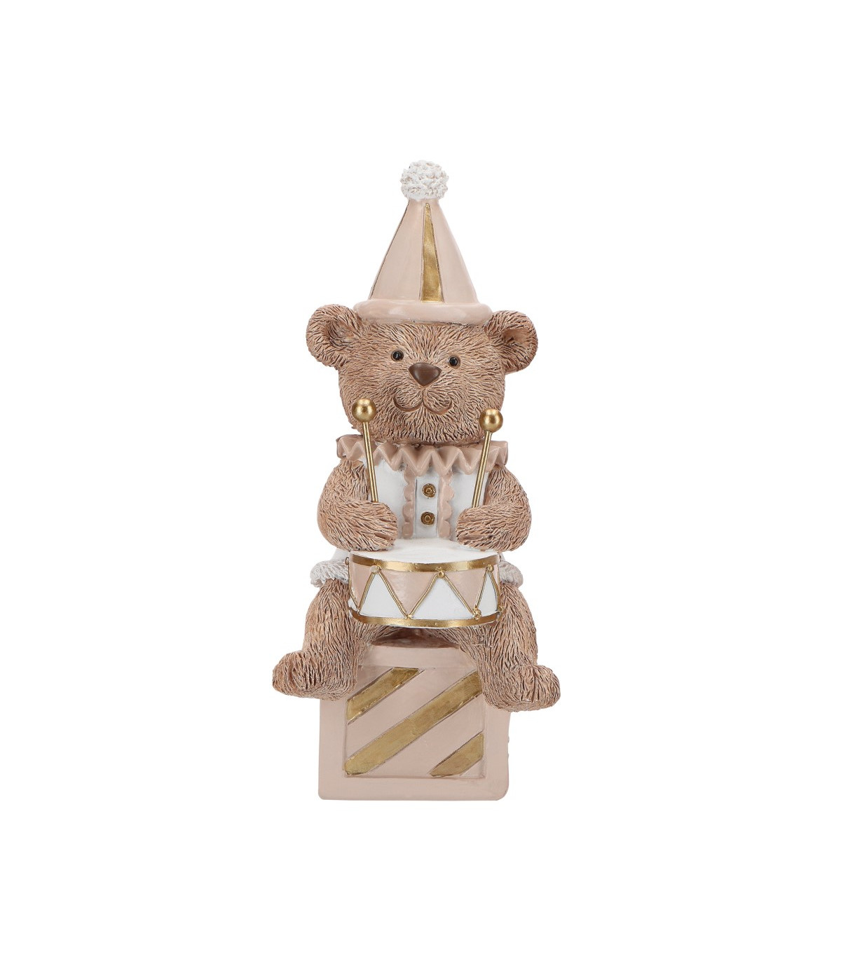 Un adorno de 20 cm de alto con forma de ositos con un instrumento musical. Tiernos y musicales, perfectos para decorar espacios infantiles.