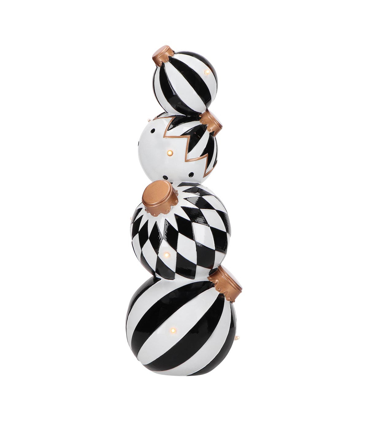 Un adorno de poliresina de 40 cm de alto con forma de bolas de Navidad blancas y negras apiladas con luces LED. Toque elegante y contemporáneo para destacar tu deco.