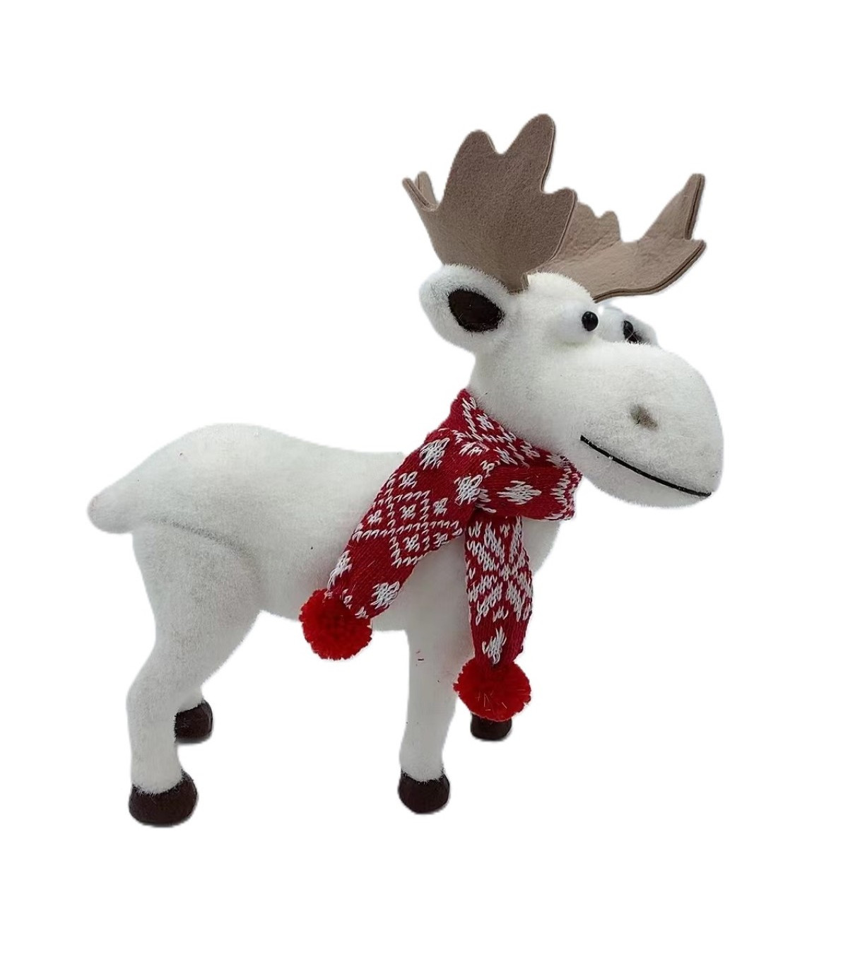 Un adorno navideño con forma de alce decorativo con bufanda invernal de 42 cm de largo y 32 cm de alto. Perfecto para ambientes cálidos y acogedores. Complementá tu decoración navideña con un estilo nórdico.