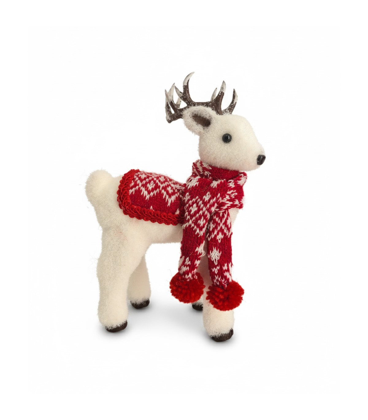Un adorno navideño con forma de reno con manta de 16 cm de ancho y 28 cm de alto. Dale a tu hogar un toque acogedor y navideño con este adorable adorno inspirado en el invierno.