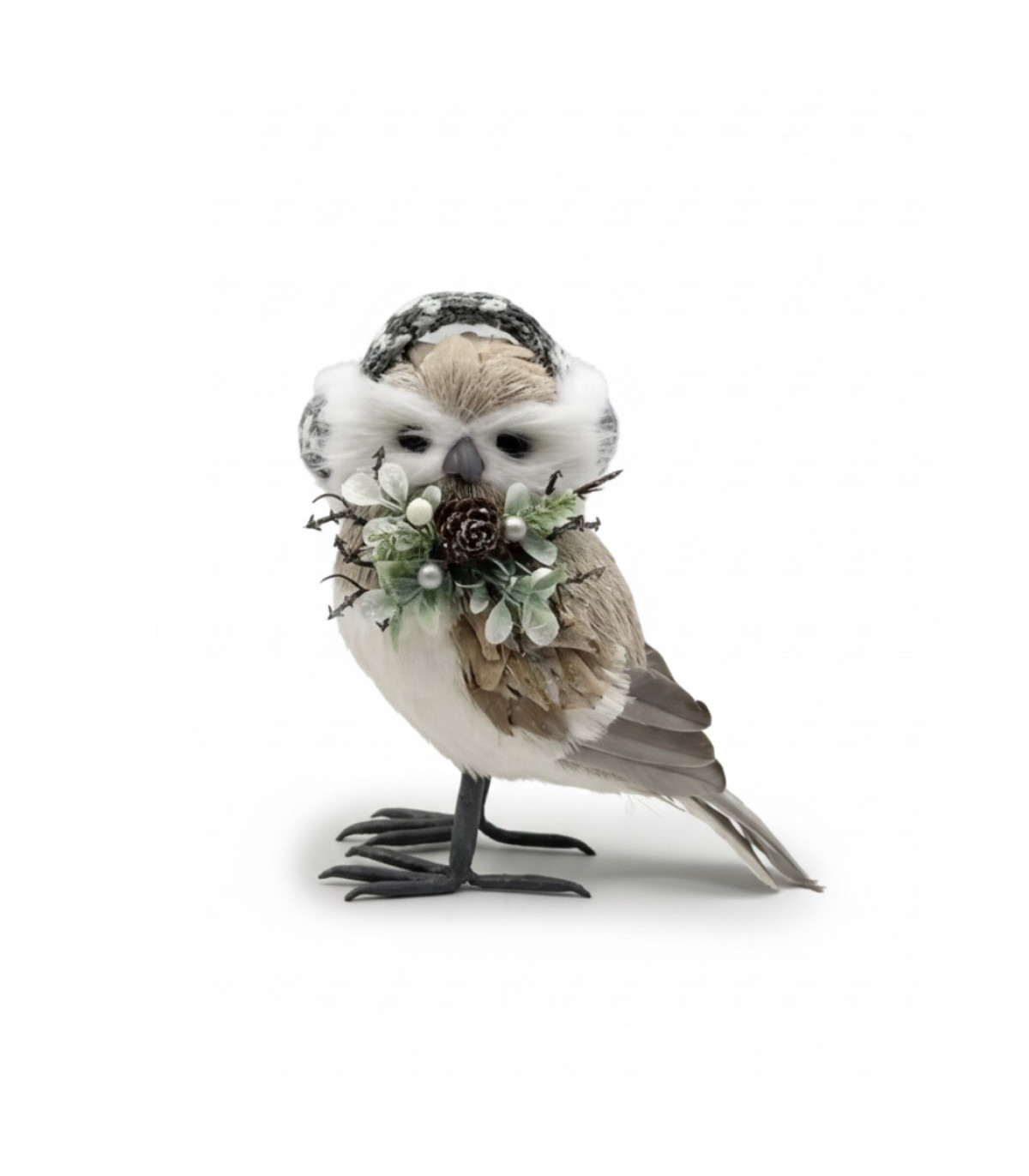 Un adorno navideño con forma de búho de 21 cm de ancho y 20 cm de alto. Añade un estilo encantador y boscoso a tu decoración. Ideal para árboles, mesas o espacios rústicos.
