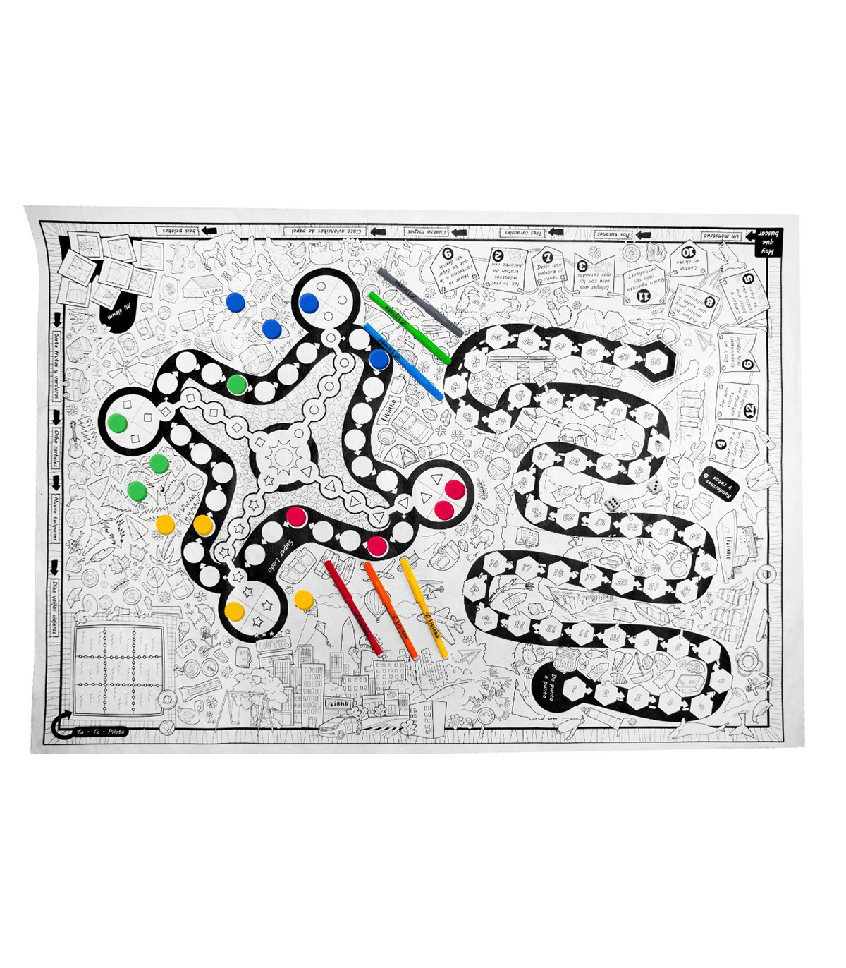 Una lona de Argentina para jugar. Viene además con 16 fichas de madera para pintar y 2 dados.