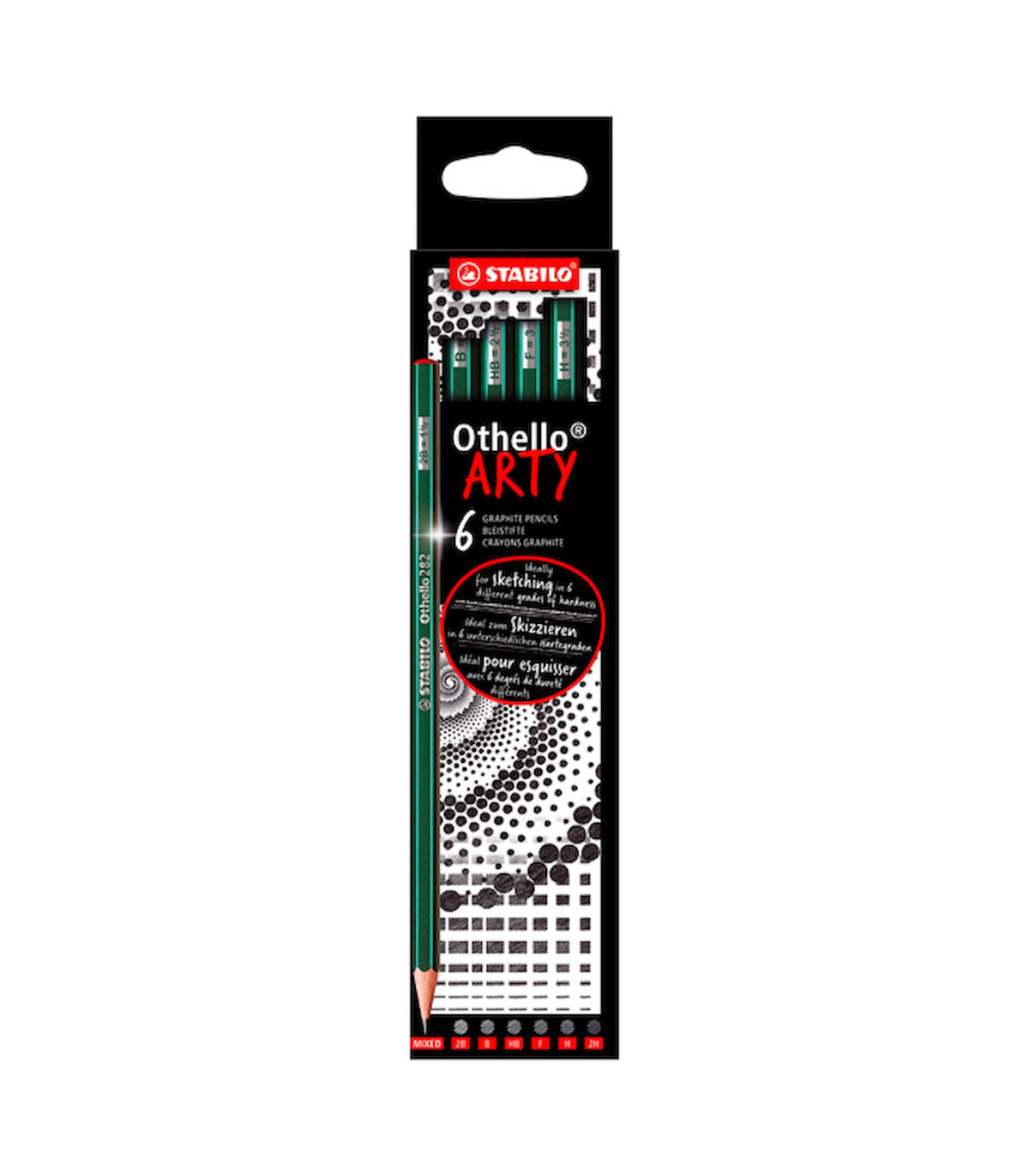 6 lápices clásicos de Stabilo con mina fuerte antiroturas. Incluye un lápiz 2B, un B, un HB, un F, un H y un 2H.