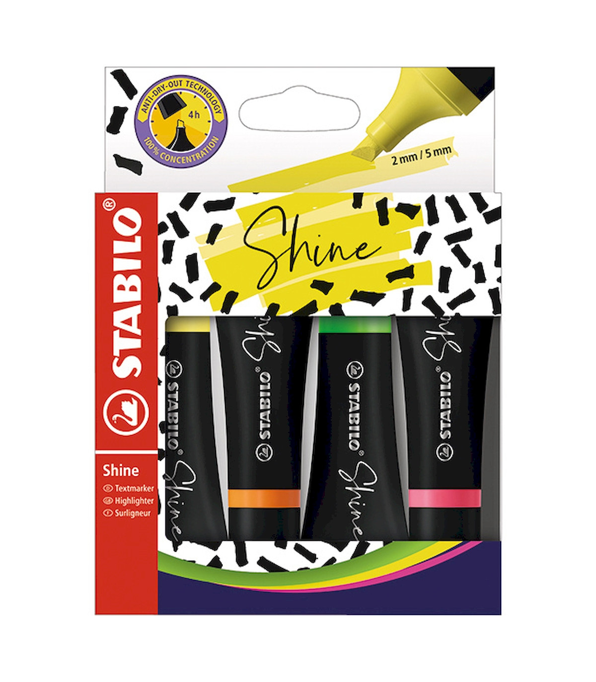 4 Resaltadores Shine en Estuche Stabilo