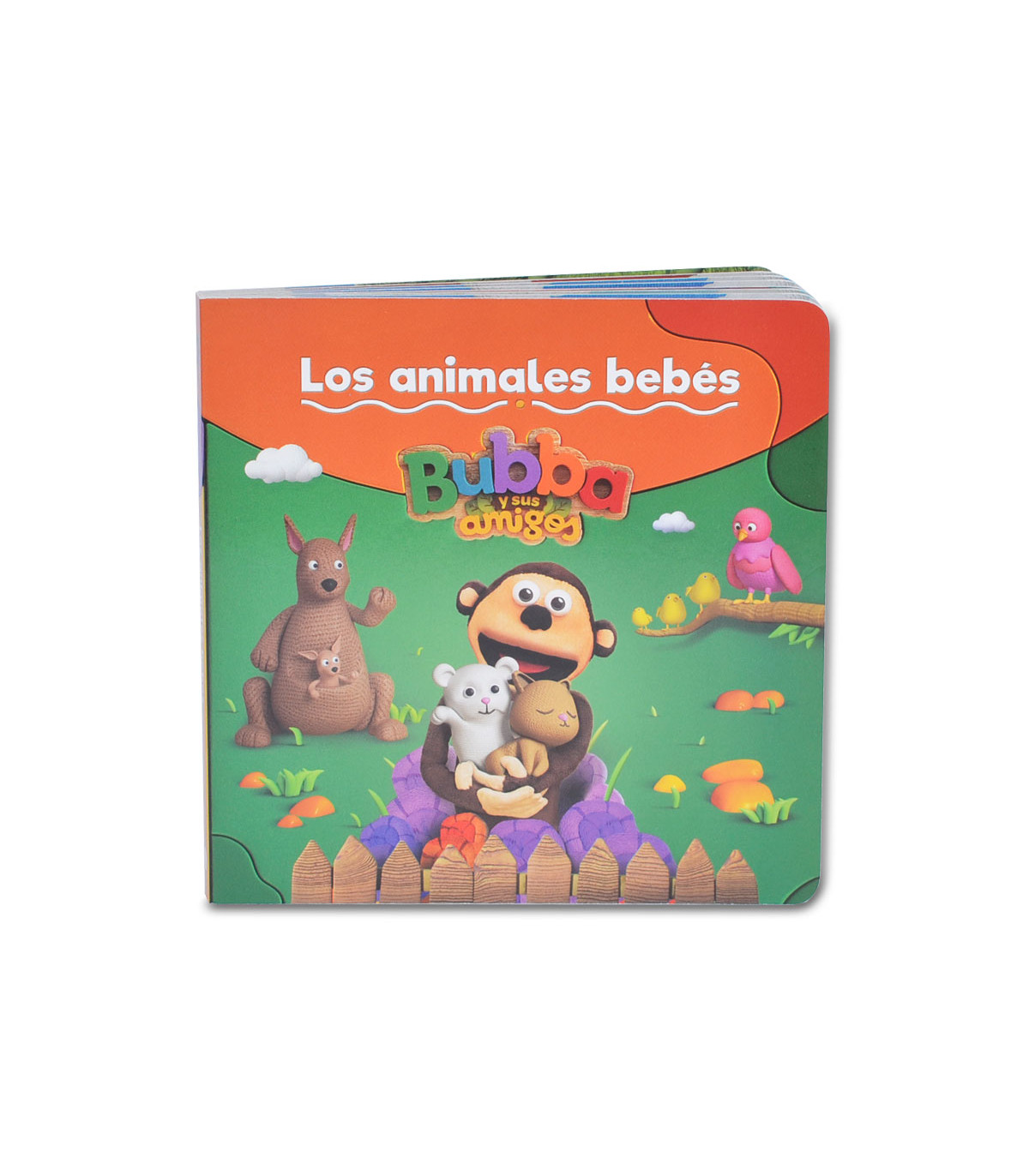 Un libro de 8 hojas de cartón rígido que invita a descubrir, junto a Bubba, que les gusta hacer a los animales bebés con sus mamás.