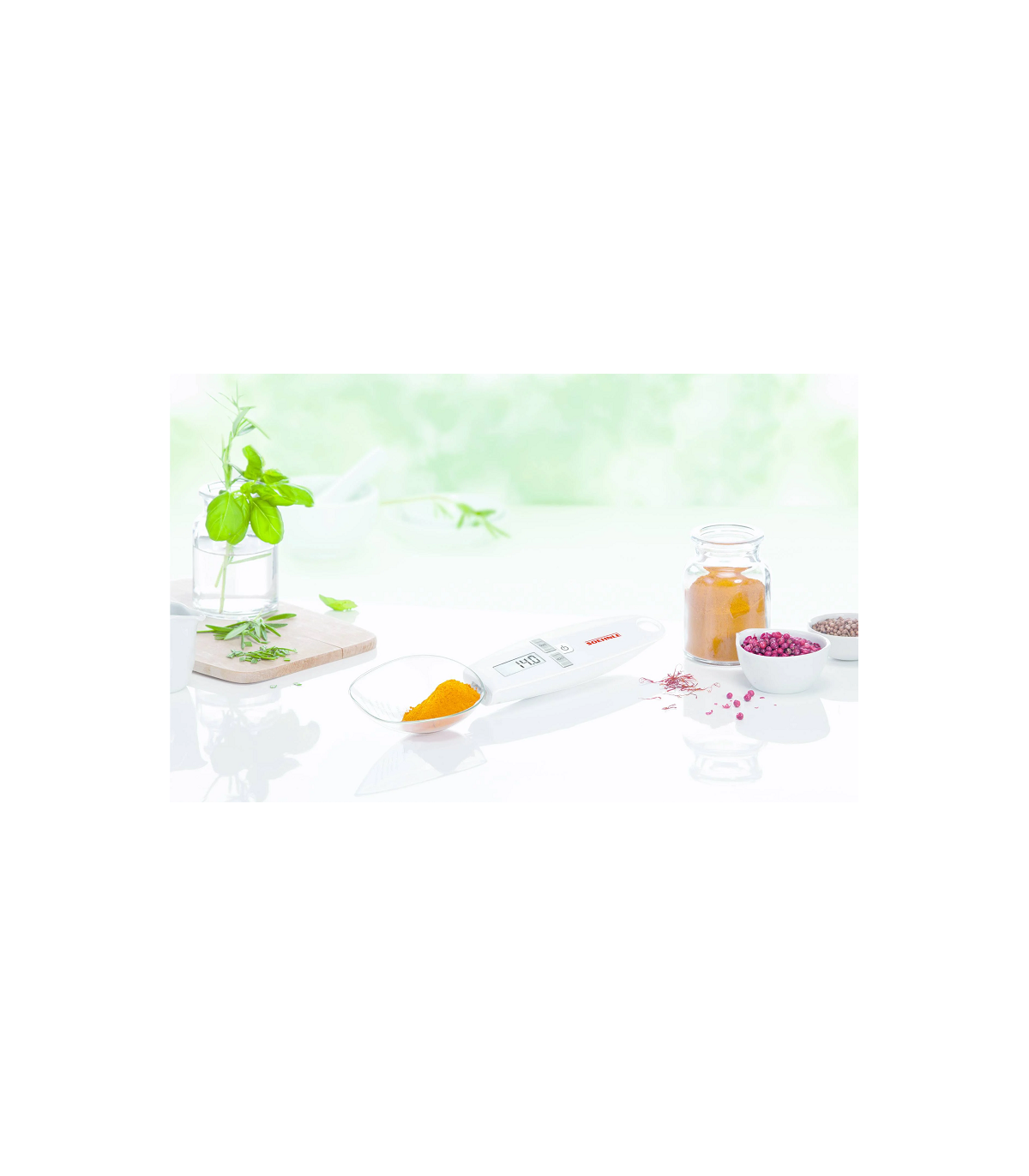 Cuanto más pequeñas sean las cantidades, más difíciles serán de pesar. No hay problema para Cooking Star. En incrementos de hasta 0,1 g, esta «cuchara» digital pesa precisamente cantidades minúsculas de ingredientes sólidos y líquidos. Ofrece una capacida