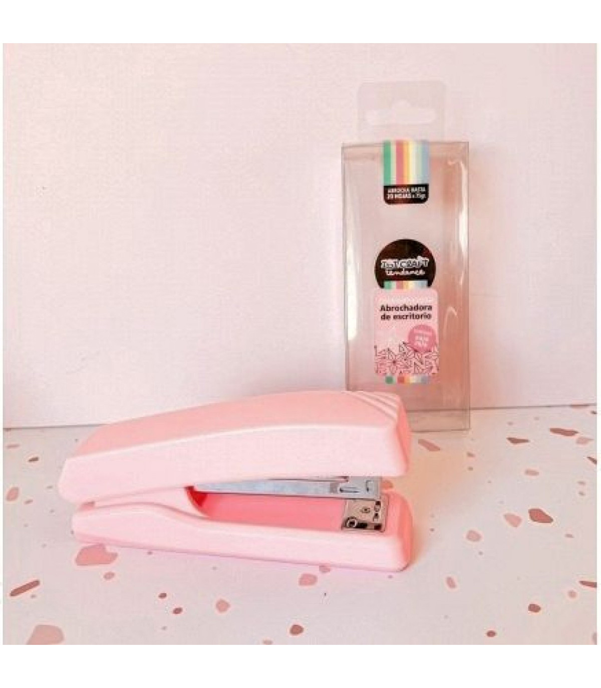 Una engrapadora abrochadora de escritorio que perfora hasta 20 hojas de 75 gramos.