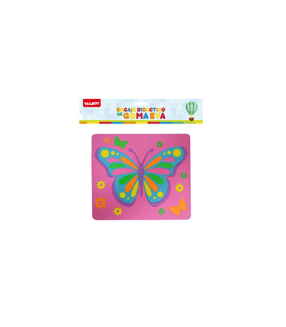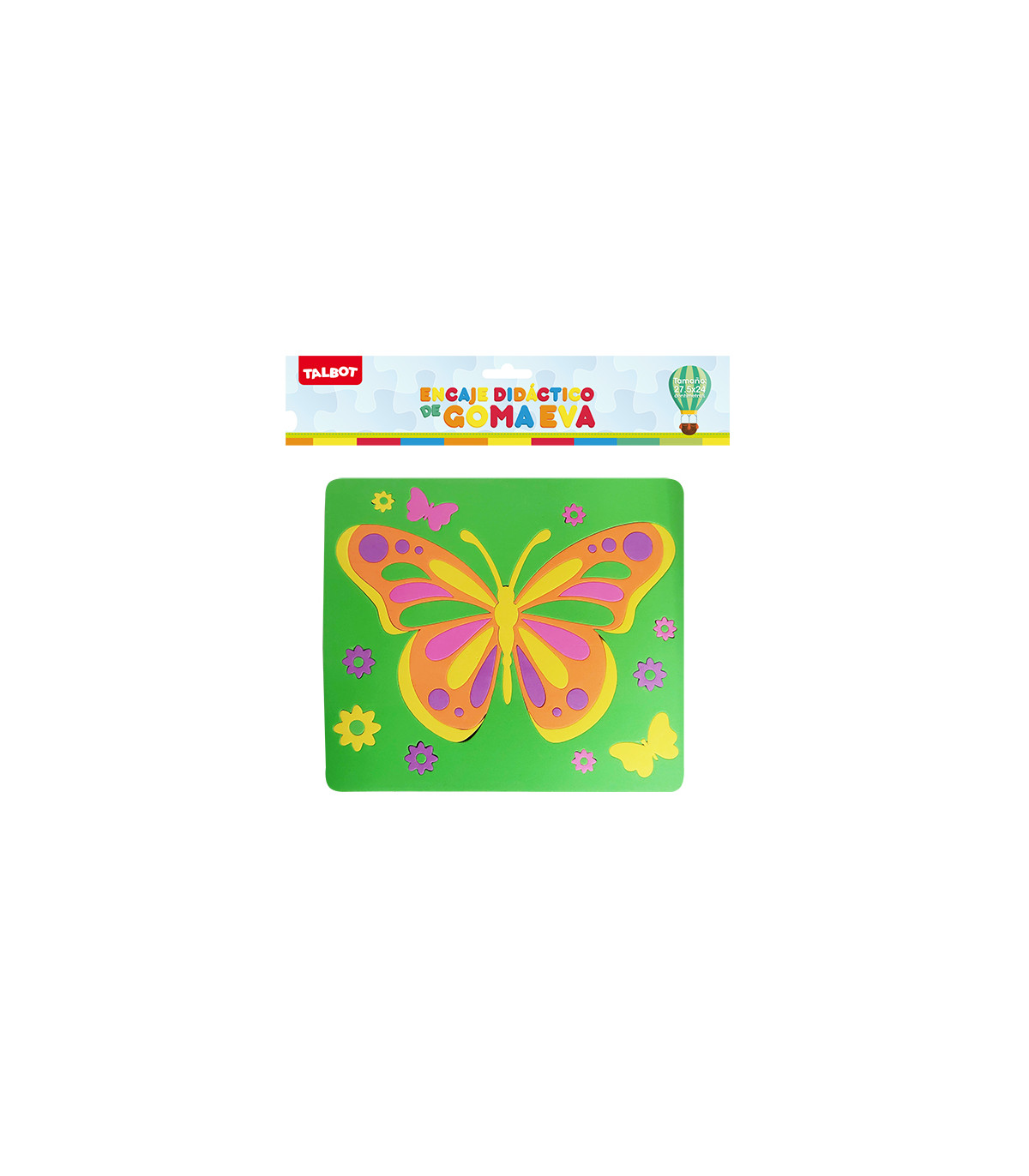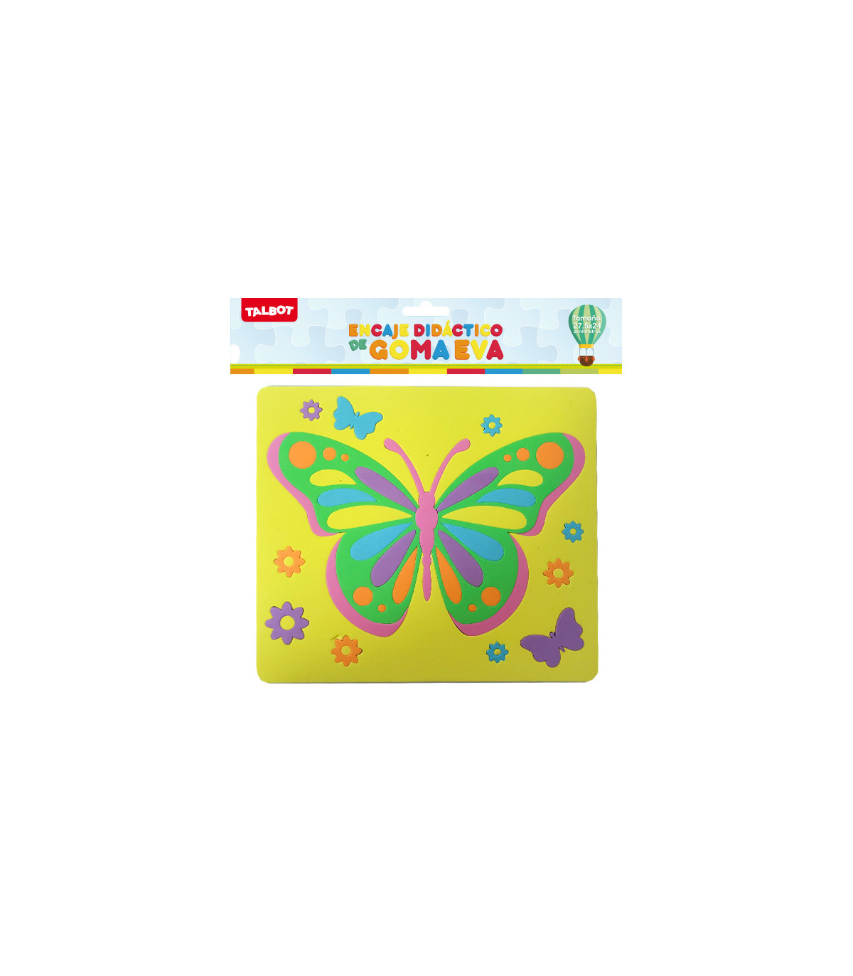 Un juego de encastre con piezas de goma eva con una figura de mariposa. Ideal para estimular la motricidad fina de los más chicos y descubrir el mundo que los rodea.