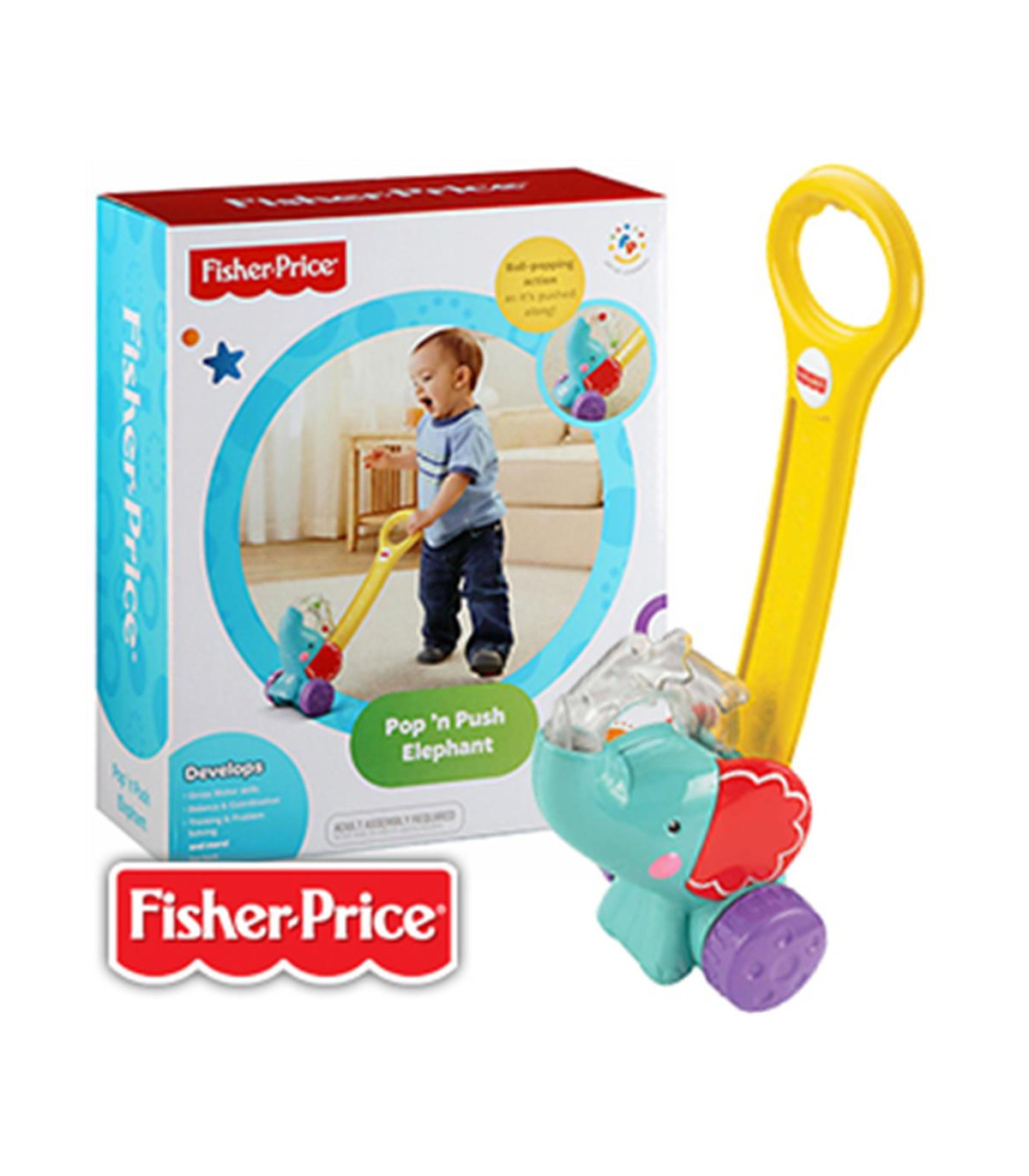 ¡El bebé no podrá resistirse a la diversión de las pelotitas que salen del elefantito! Mientras el bebé empuja al elefantito, coloridas pelotitas salen de la trompa y esto continúa mientras el bebé sigue avanzando.