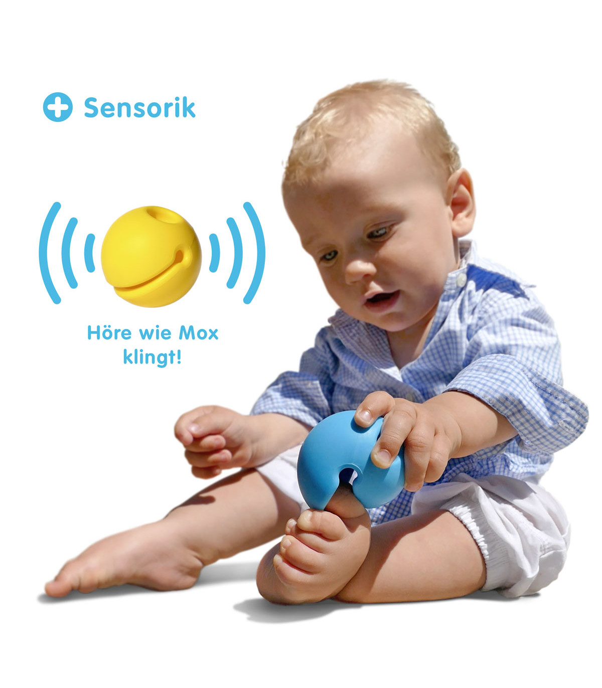 Mox es una pelota de silicona con boca grande. Le gusta hablar, reír, cantar y comer. Come bolitas, monedas y mucho más. También le gusta rodar, que lo lancen, lo atrapen y que le hagan malabarismos. Mantiene el equilibrio y forma torres con sus hermanos.