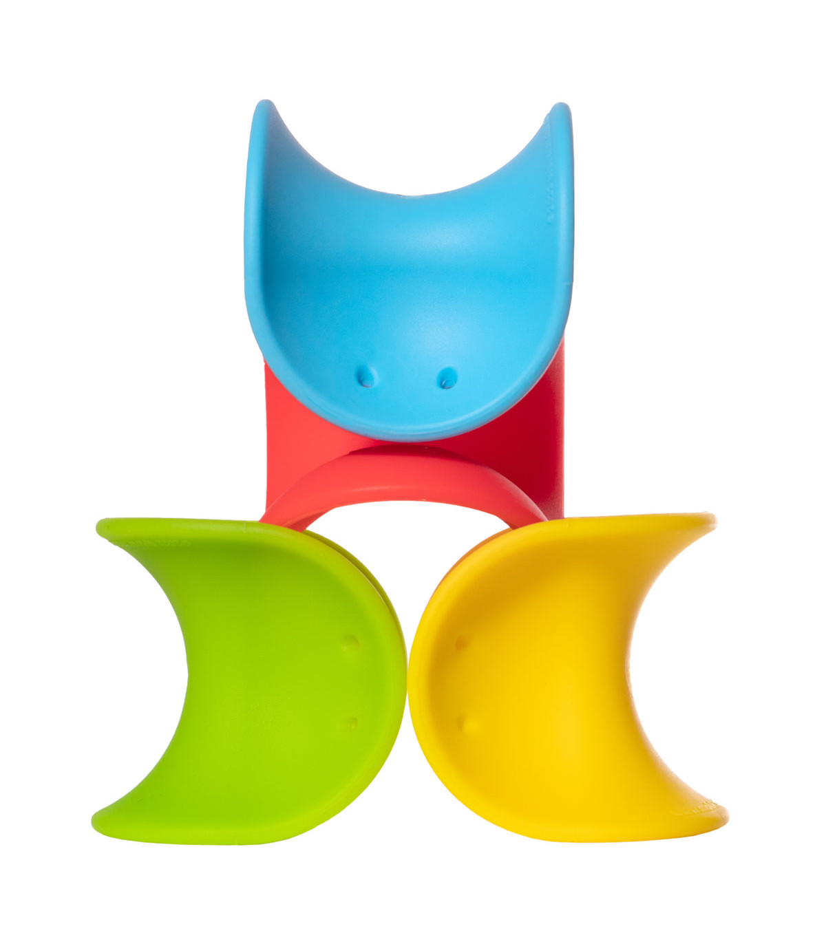 La geometría de Ulu le permite rodar en 2 direcciones pero nunca se cae. Hecha de silicona elástica, es irresistible al tacto. Es juguete de agarre y mordillo para bebés y, con sus dos ojos, se convierte en un adorable personaje para el juego imaginativo.