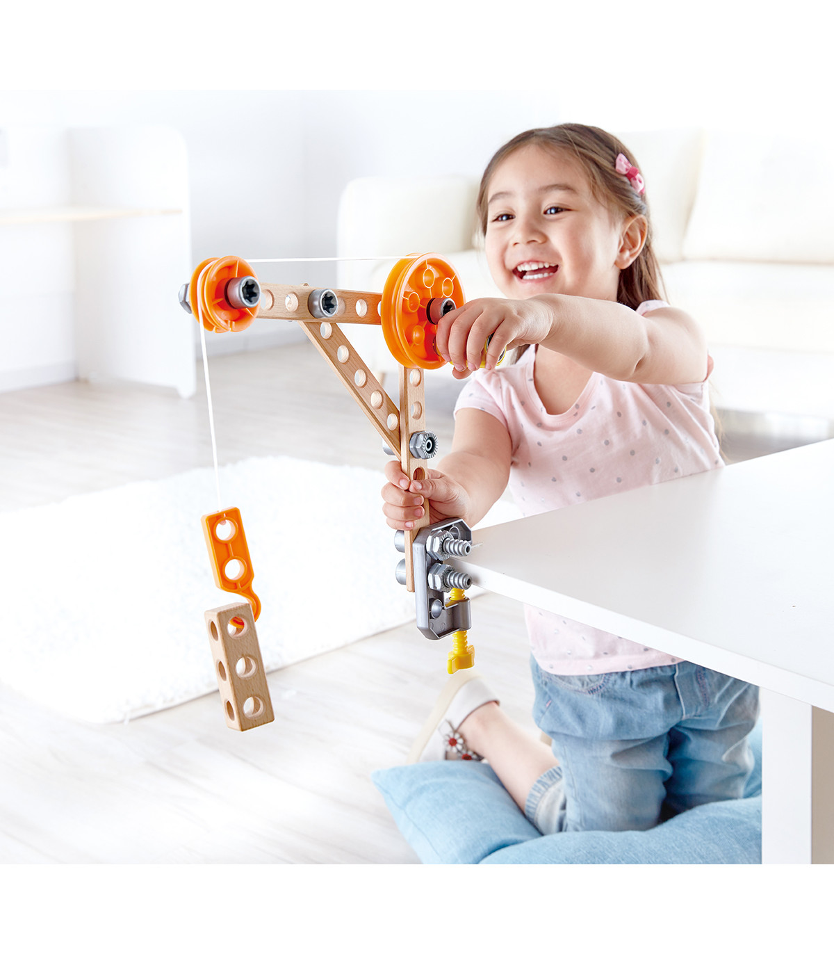 Ponete a inventar con este kit que contiene más de tres emocionantes experimentos. Creá unas manos mecánicas, una grúa y una rana trepadora.