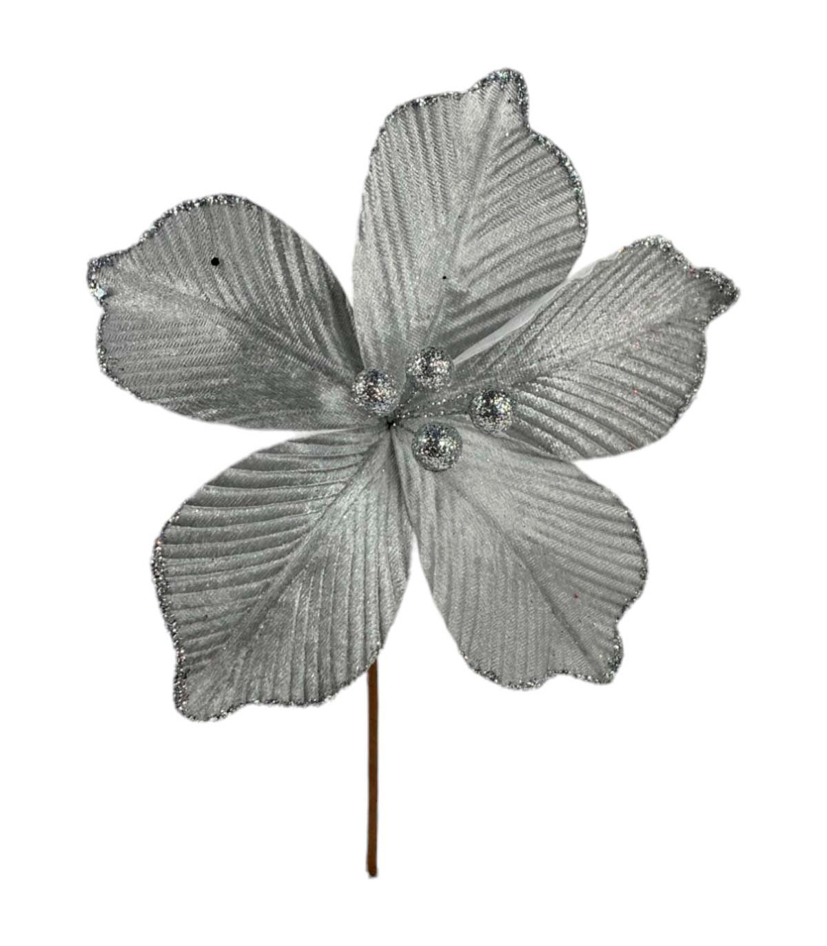 Adorno de Poinsettia Plateada 20 cm Alparamis