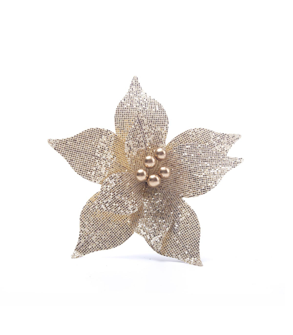 Un adorno con forma de flor de Estrella Federal de 22 cm de diámetro hecho en tela poliéster, plástico y alambre para decorar el árbol de Navidad.