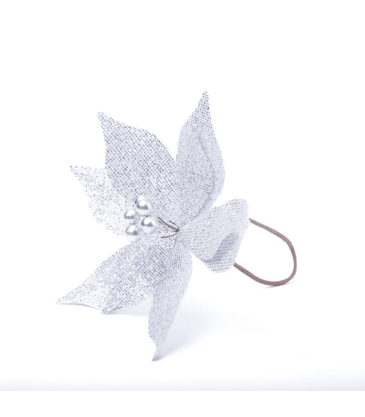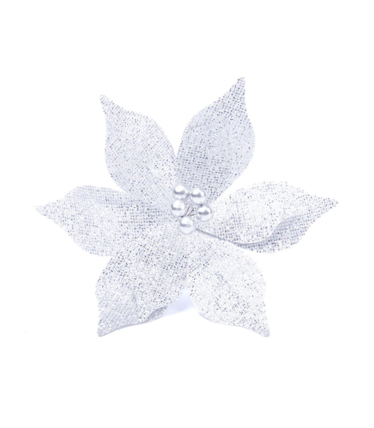 Un adorno con forma de flor de Estrella Federal de 22 cm de diámetro hecho en tela poliéster, plástico y alambre para decorar el árbol de Navidad.
