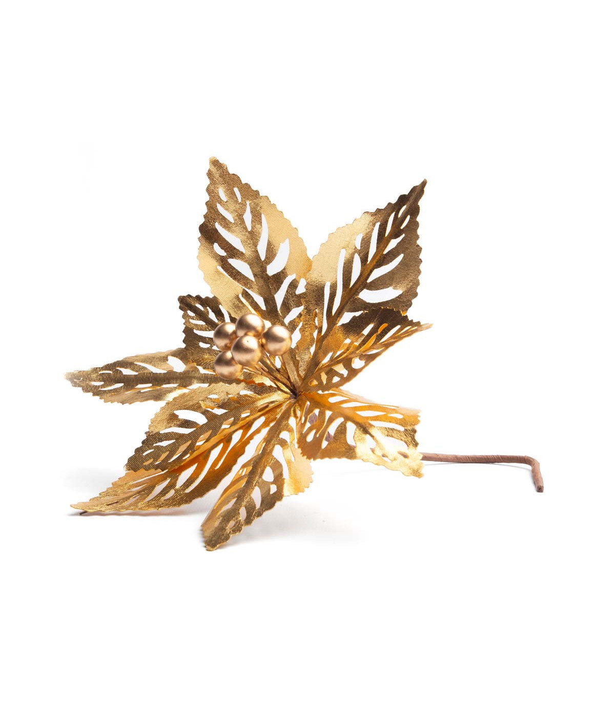 Un adorno con forma de flor de Estrella Federal calada de 22 cm de diámetro hecho en tela poliéster, platico y alambre para decorar el árbol de Navidad.