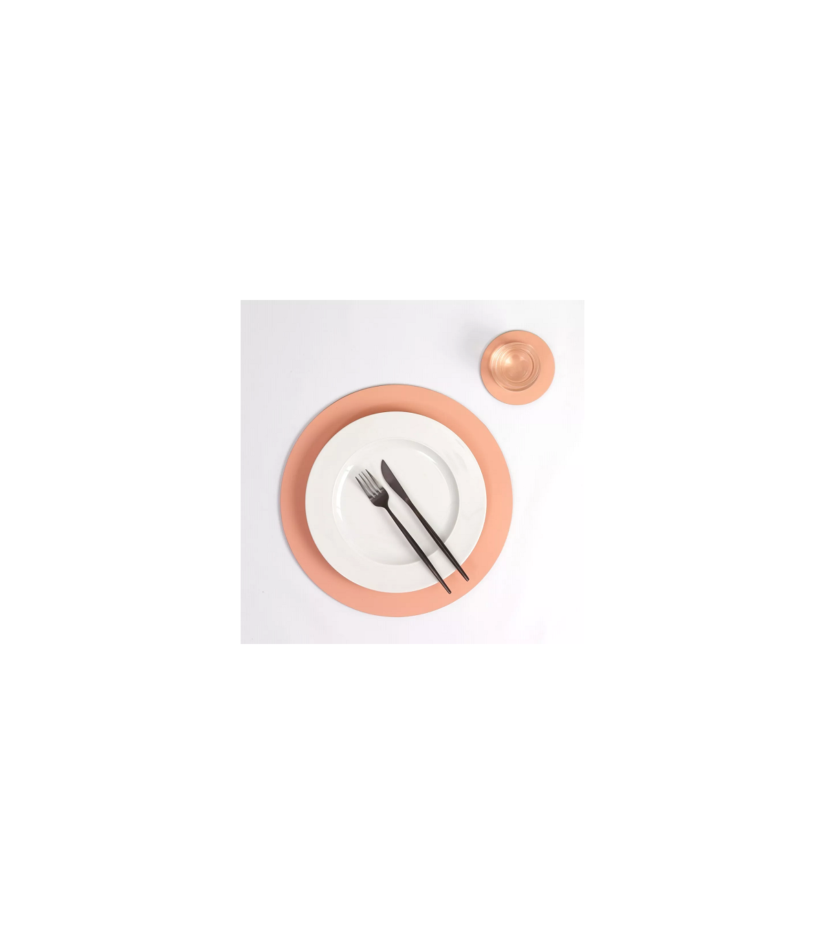 Individual de mesa. Práctico y elegante. Superficie de fácil limpieza. Fabricado con cuero 100% reciclado. Diseño sustentable y duradero. Medidas: 35 x 35 x 0,2cm