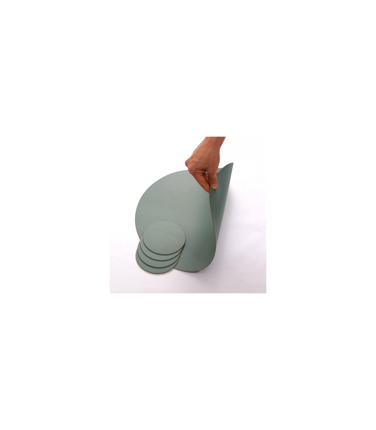 Individual de mesa. Práctico y elegante. Superficie de fácil limpieza. Fabricado con cuero 100% reciclado. Diseño sustentable y duradero. Medidas: 35 x 35 x 0,2cm
