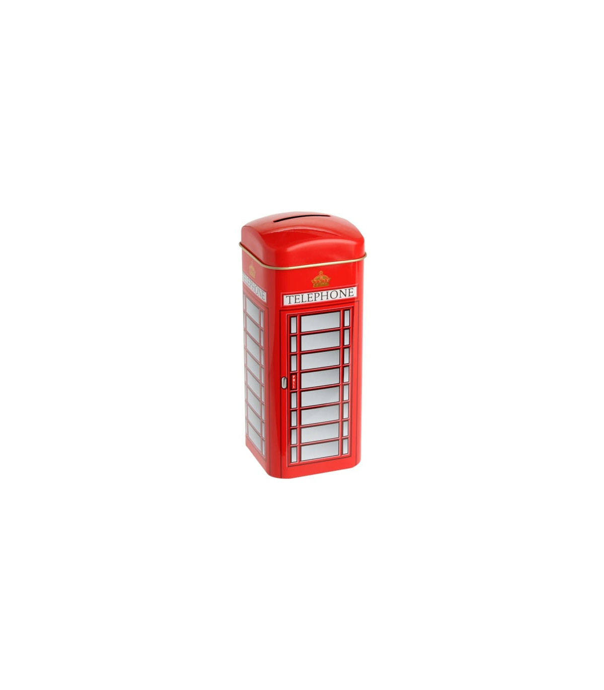 Esta lata contiene 14 saquitos de té inglés de gran calidad: sus mezclas han sido cuidadosamente seleccionadas para garantizar aromas y sabores únicos en su clase. La lata-alcancía de la cabina telefónica es parte de un combo de 3 que representan íconos d