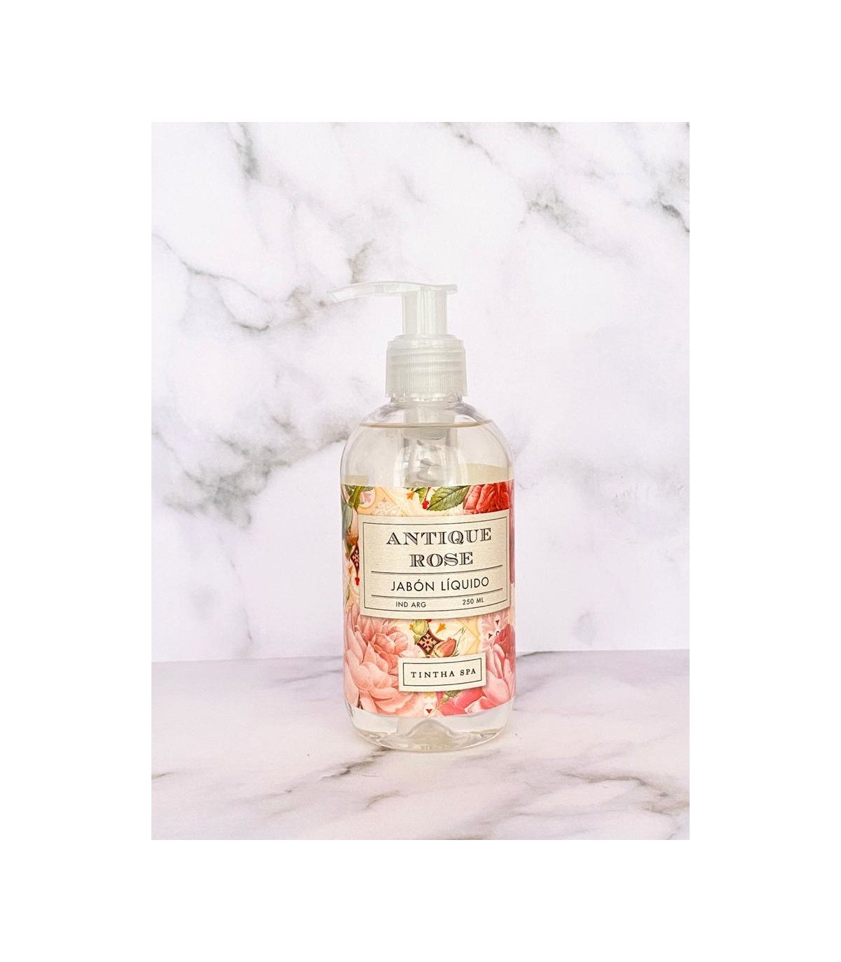 Jabon líquido de 250 ml. Contiene aceites vegetales que no alteran el ph de tu piel. Con aroma a Rosa antigua.