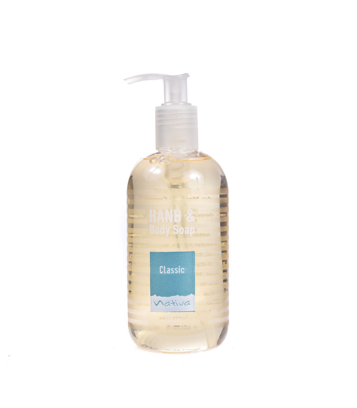 Jabón líquido para manos Nativa con fragancia. Dimensión: 350 cm3. Aroma: Classic.