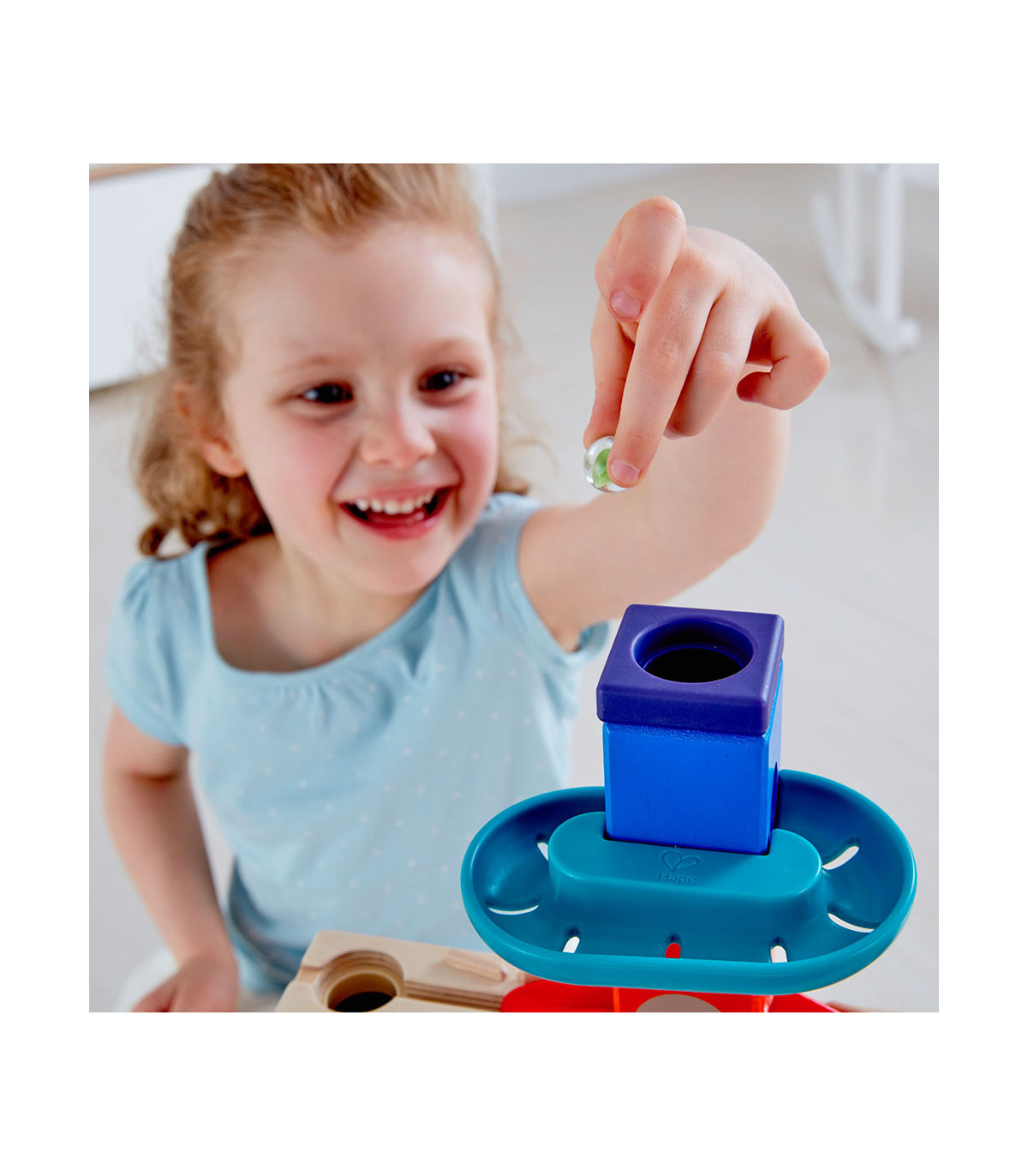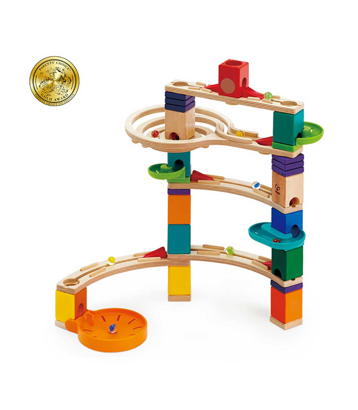 Acercate a la acción de Quadrilla con tres canaletas que harán que tus bolitas corran por el exterior de los bloques coloreados de camino a la meta del fondo. Es muy divertido y aumenta el tiempo de juego.